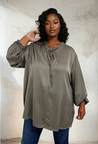 Eine elegante und stilvolle Bluse mit Krawatte im Ausschnitt, perfekt für den Alltag und die Party. Die entspannte Passform mit dem weichen Material erzeugt eine komfortable und schmeichelhafte Silhouette.