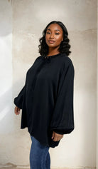 Eine elegante und stilvolle Bluse mit Krawatte im Ausschnitt, perfekt für den Alltag und die Party. Die entspannte Passform mit dem weichen Material erzeugt eine komfortable und schmeichelhafte Silhouette.