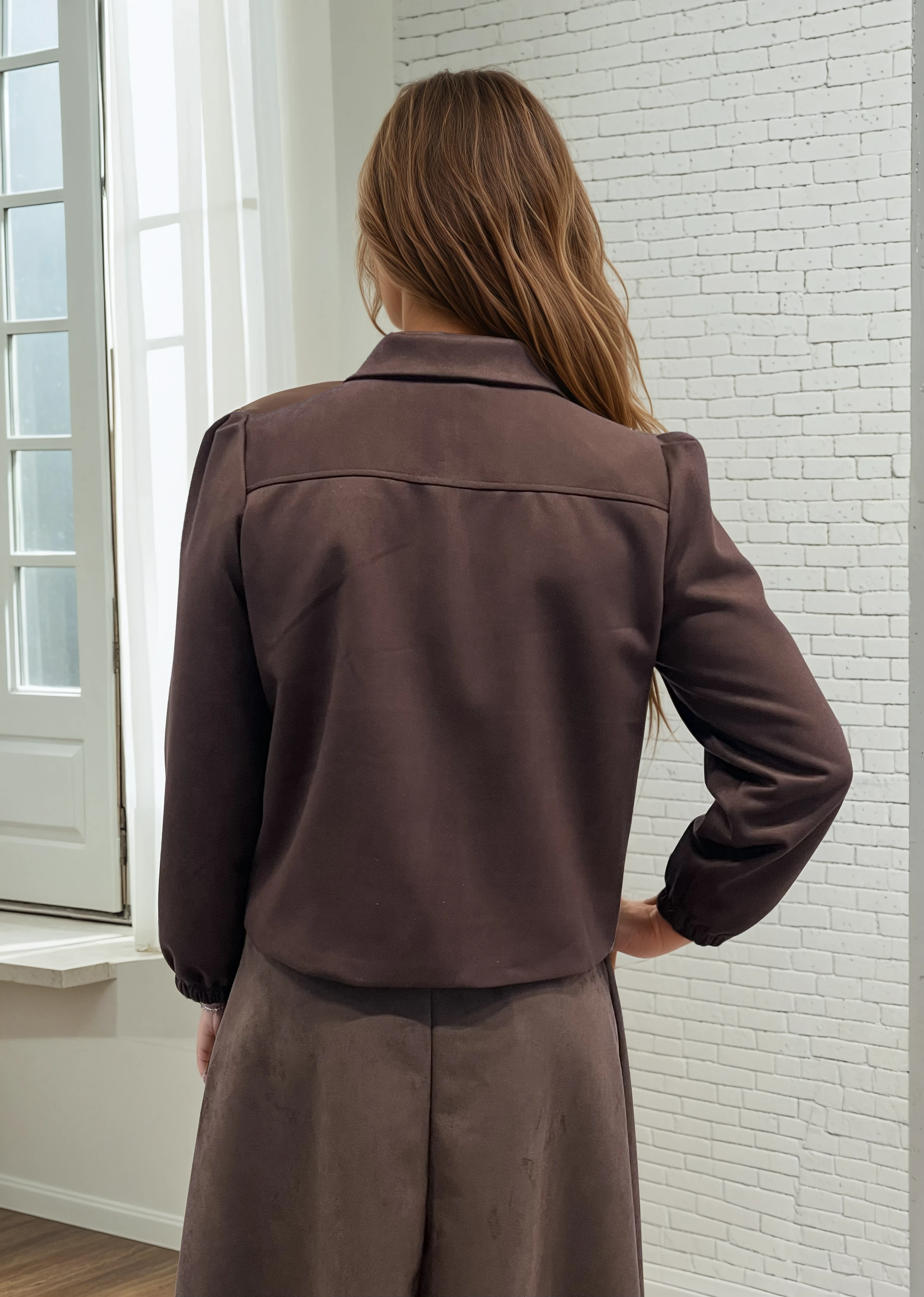 🤎 Jacke in Wildlederoptik – Elegantes Kurzmodell mit klassischen Details 🤎