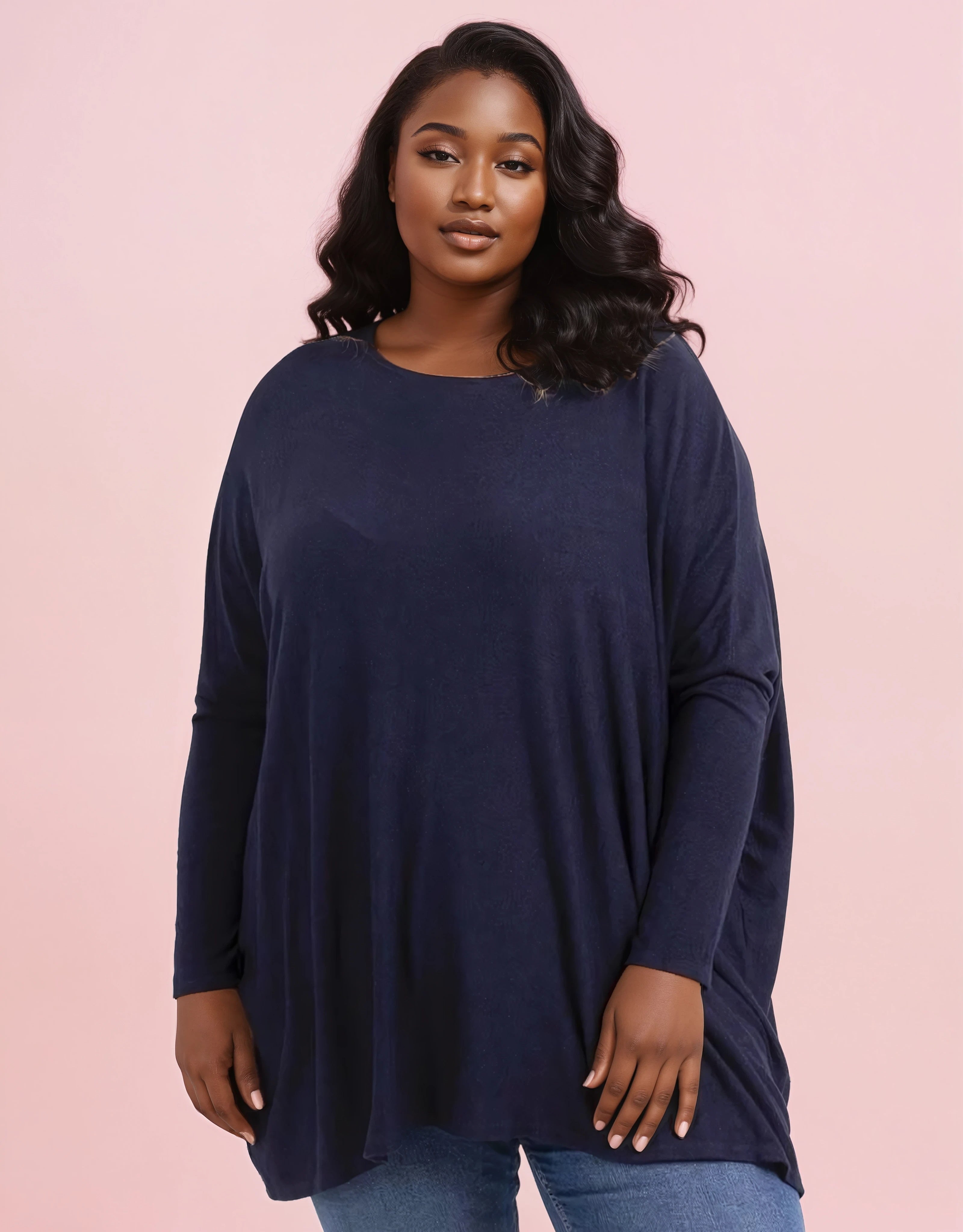 Es hat einen Rundhalsausschnitt, lange Ärmel und einen leicht abgerundeten Saum, der für einen schönen und lässigen Look sorgt. Das flexible Material macht es bequem und einfach zu tragen – perfekt zu Jeans, Leggings oder Hosen für einen stilvollen Alltagslook.