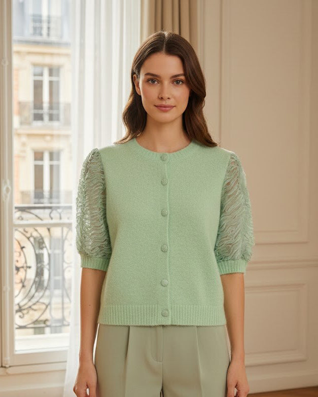 Strickjacke Vanessa mit gerafften Ärmeln mintgrün