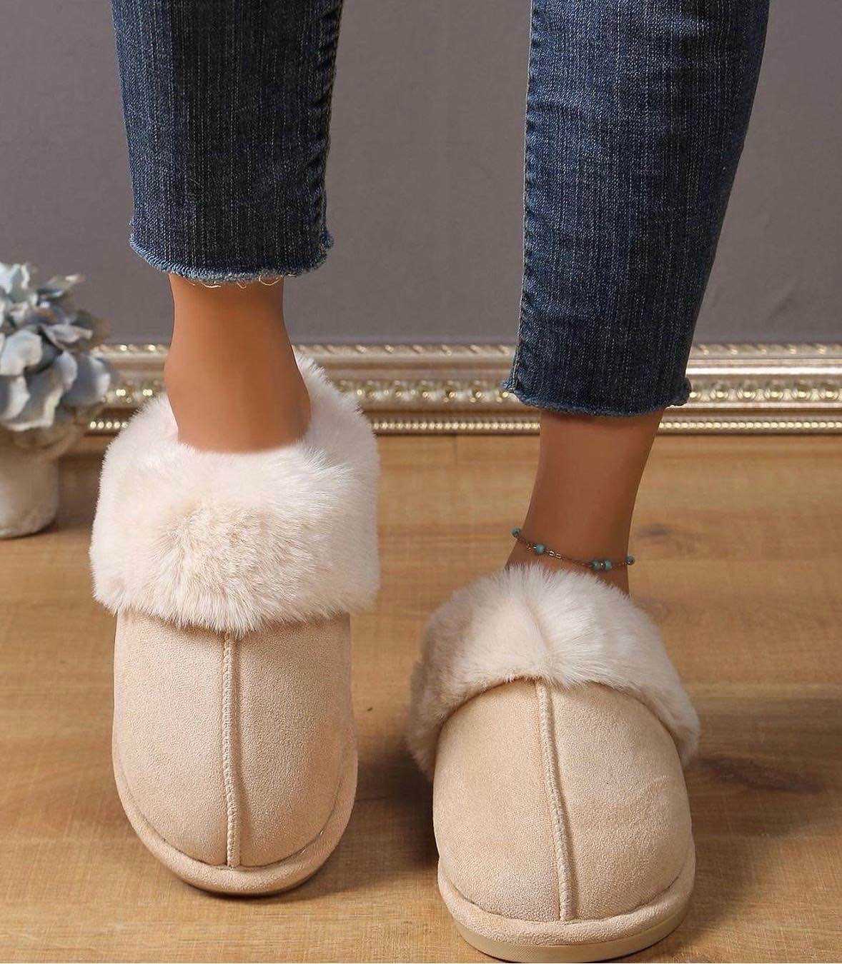 Hausschuhe flauschig beige