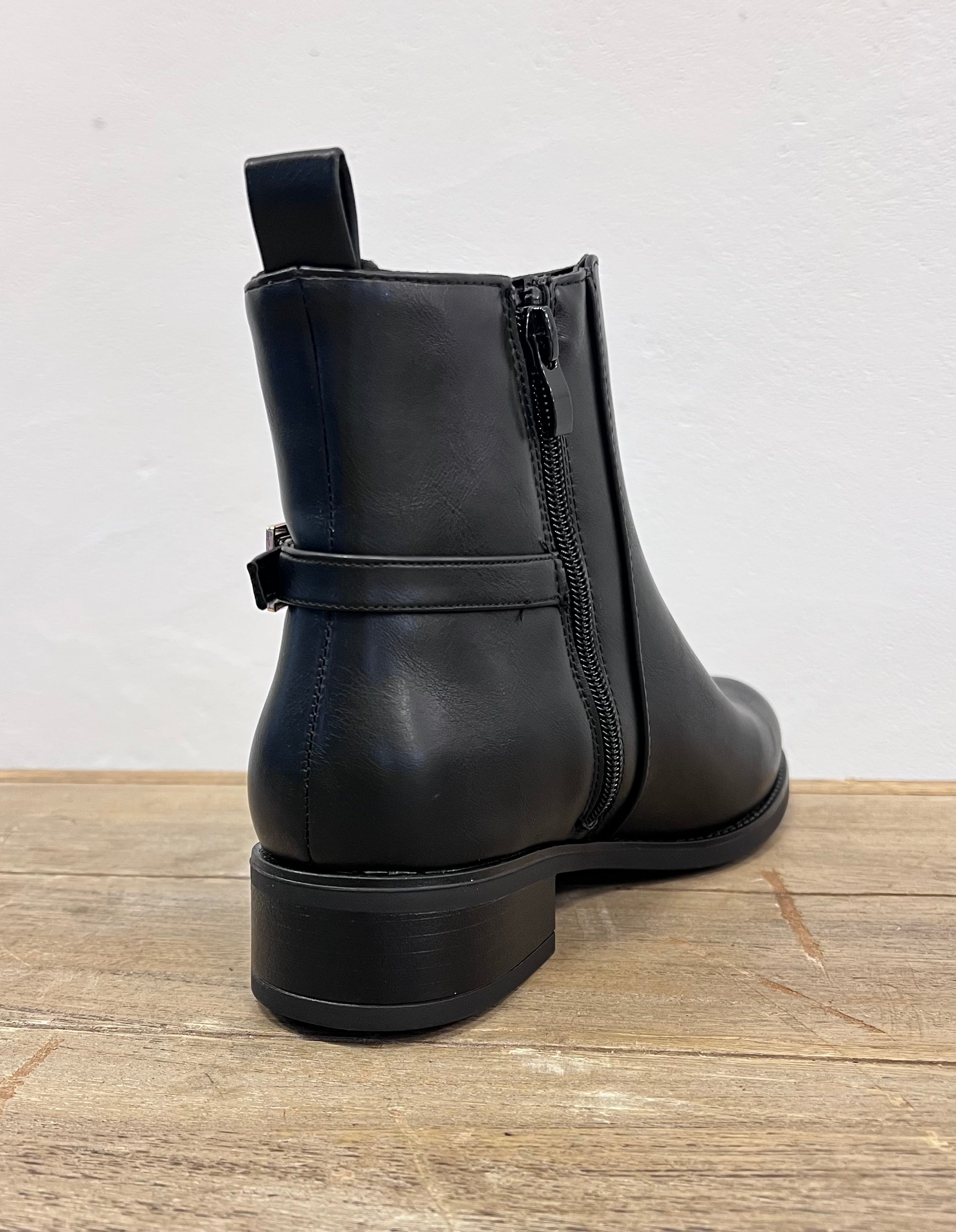 Ein zeitloser und eleganter Stiefel, der sowohl für den Alltag als auch für elegantere Anlässe perfekt ist. Das stilvolle Design in Schwarz wird mit einer dekorativen Goldschnalle um den Knöchel kombiniert, die dem Schuh eine exklusive und moderne Note verleiht. Die gepflegte Silhouette und die abgerundete Spitze sorgen für einen klassischen Ausdruck, der sich leicht mit der gesamten Garderobe kombinieren lässt.