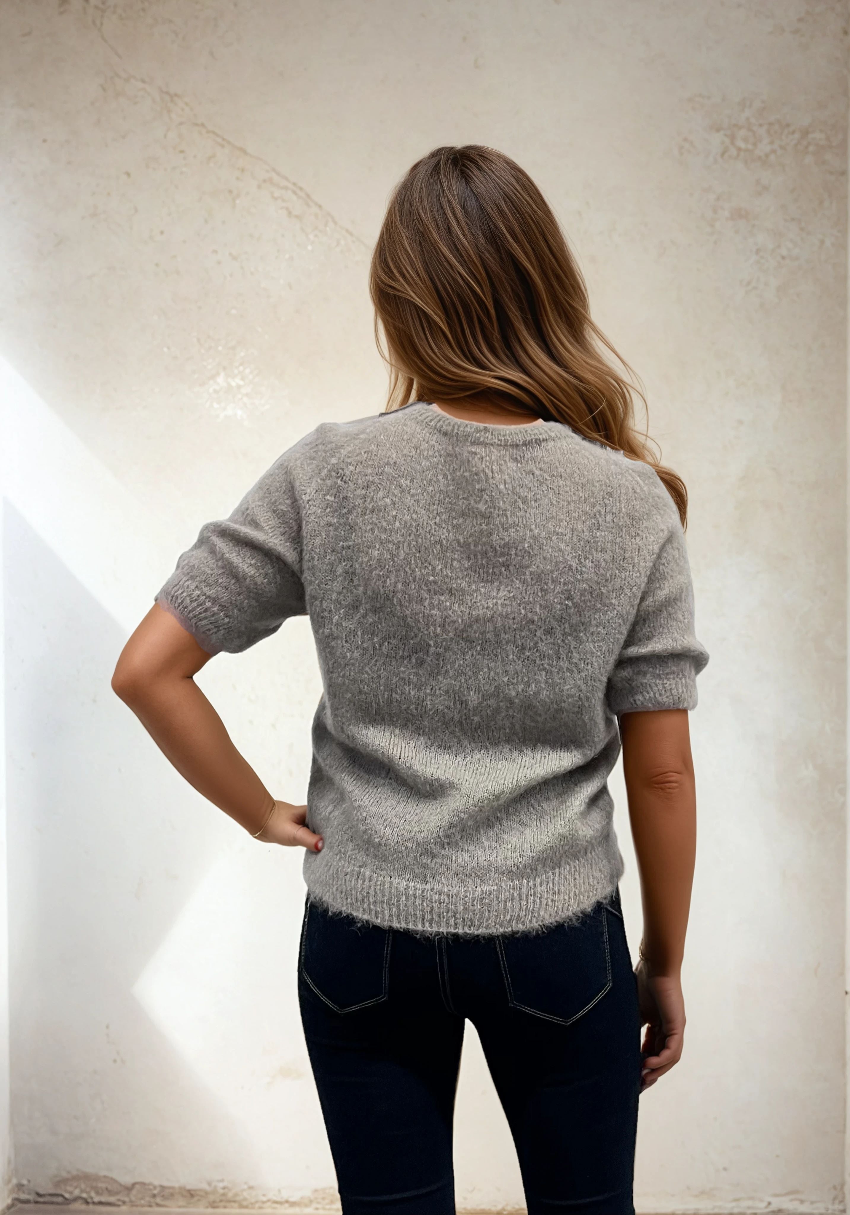 Kurzarmhemd ist ein leichter und weicher Strickpullover mit einem luftigen und eleganten Ausdruck – perfekt für Frühling und Sommer 🌷 Der exklusive Mohair-Mix sorgt für ein flauschiges, flexibles Tragegefühl, das sich angenehm an den Körper anschmiegt und den Pullover sowohl bequem als auch stilvoll macht.
