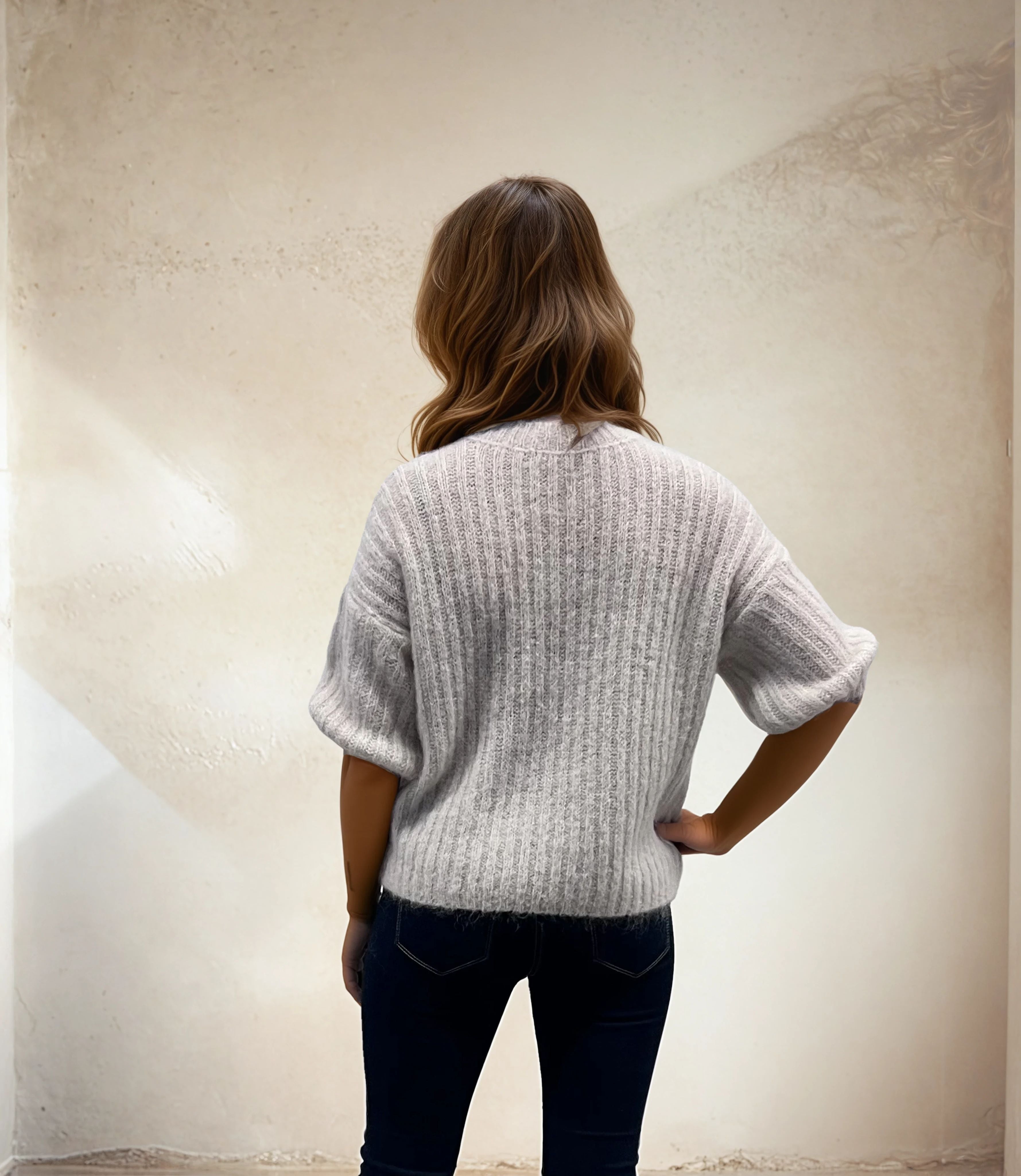Kurzärmliger Mohairpullover ist ein leichter und luftiger Strickpullover mit weichem, exklusivem Ausdruck – perfekt für Frühling und Sommer 🌸 Der flauschige Mohair-Mix verleiht dem Kleidungsstück einen eleganten und femininen Touch, während die Rippstruktur für einen stilvollen und modernen Eindruck sorgt.