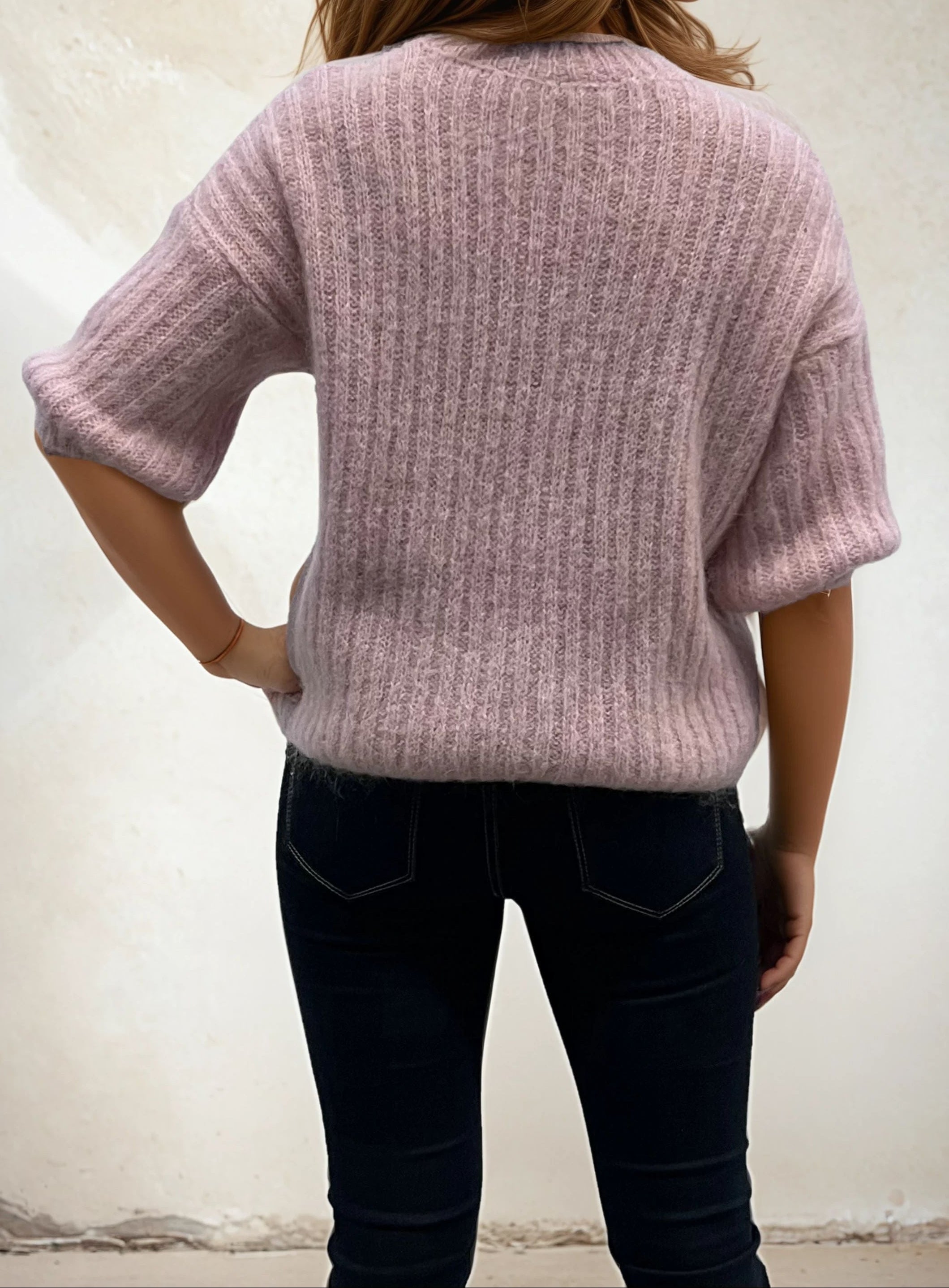 Pullover Mohair Kurzarm rosa