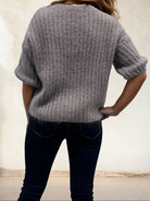 Der Pullover hat einen Rundhalsausschnitt, kurze Ärmel mit weichem Fall und eine entspannte Passform, die sowohl bequem als auch schmeichelhaft ist. Perfekt zu Jeans, einem Rock oder einer Hose für einen schlichten, aber frühlingsfrischen Look 💕