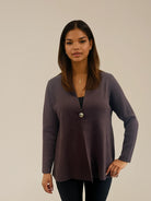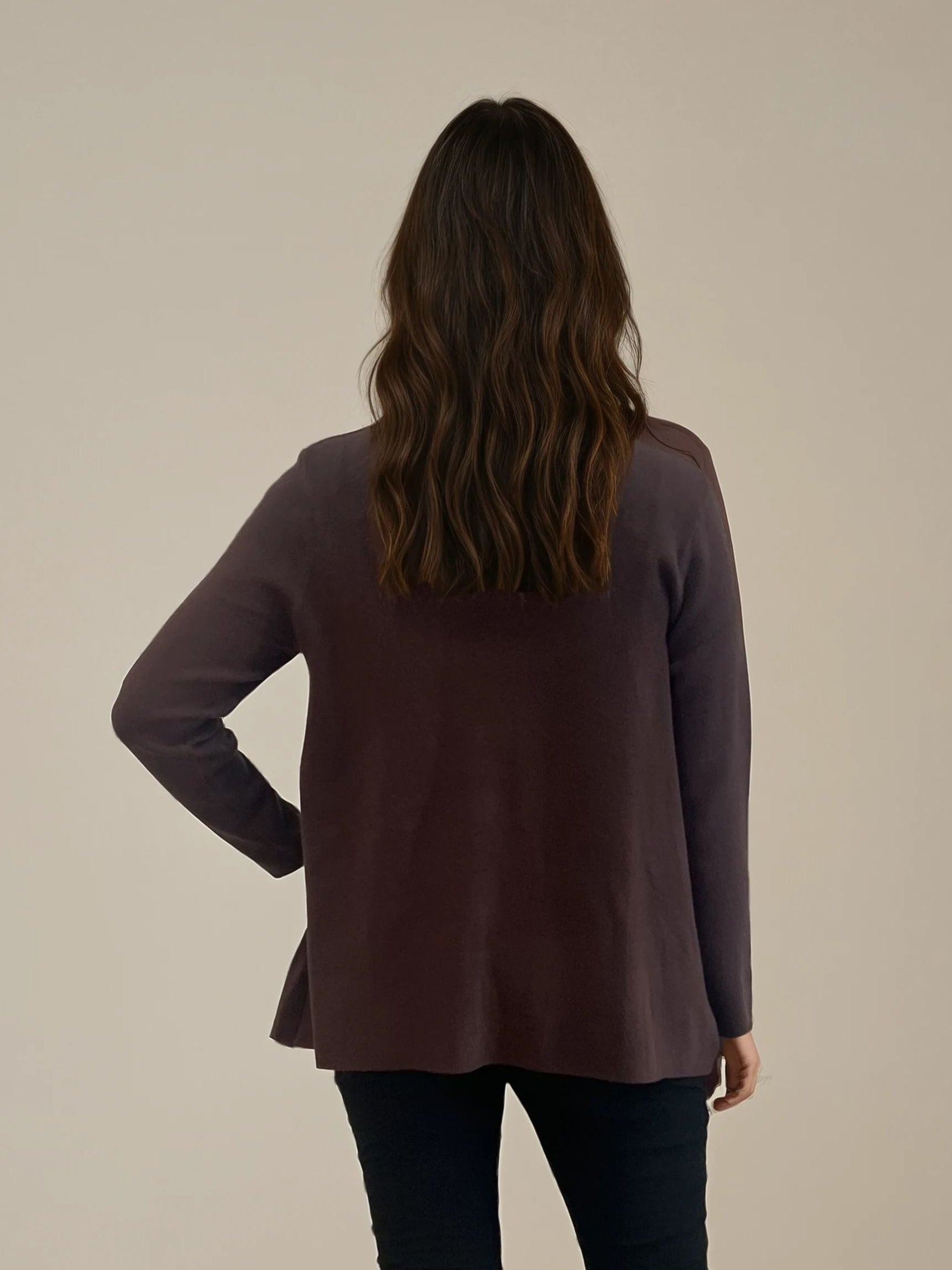 Denna cardigan med en dekorativ guldknapp från Mirelle Design är ett stilrent och mångsidigt plagg som kombinerar mjuk komfort med elegant design. Den enkla knäppningen fram ger en smickrande siluett och gör koftan perfekt att bära både öppen och stängd. Modellen är lätt utställd nedtill för en ledig och feminin passform.