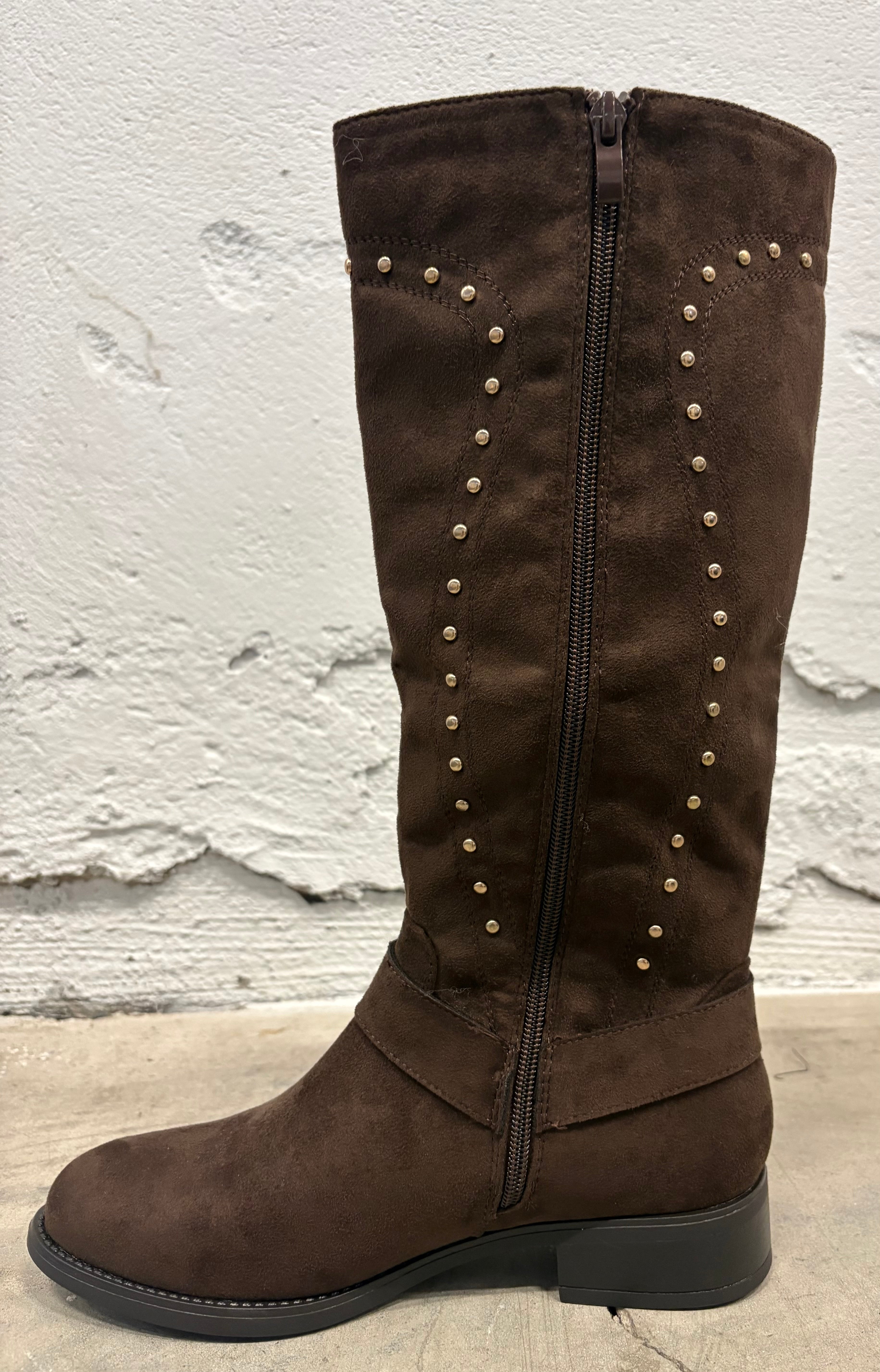 Braune Wildlederstiefel mit Nieten