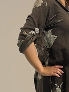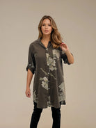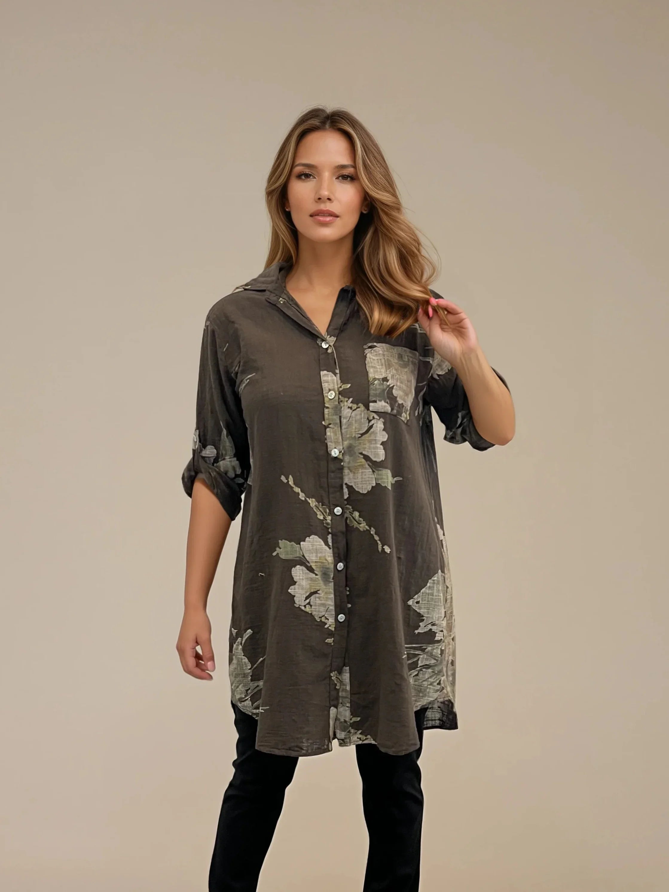 Long shirt bitten floral brown