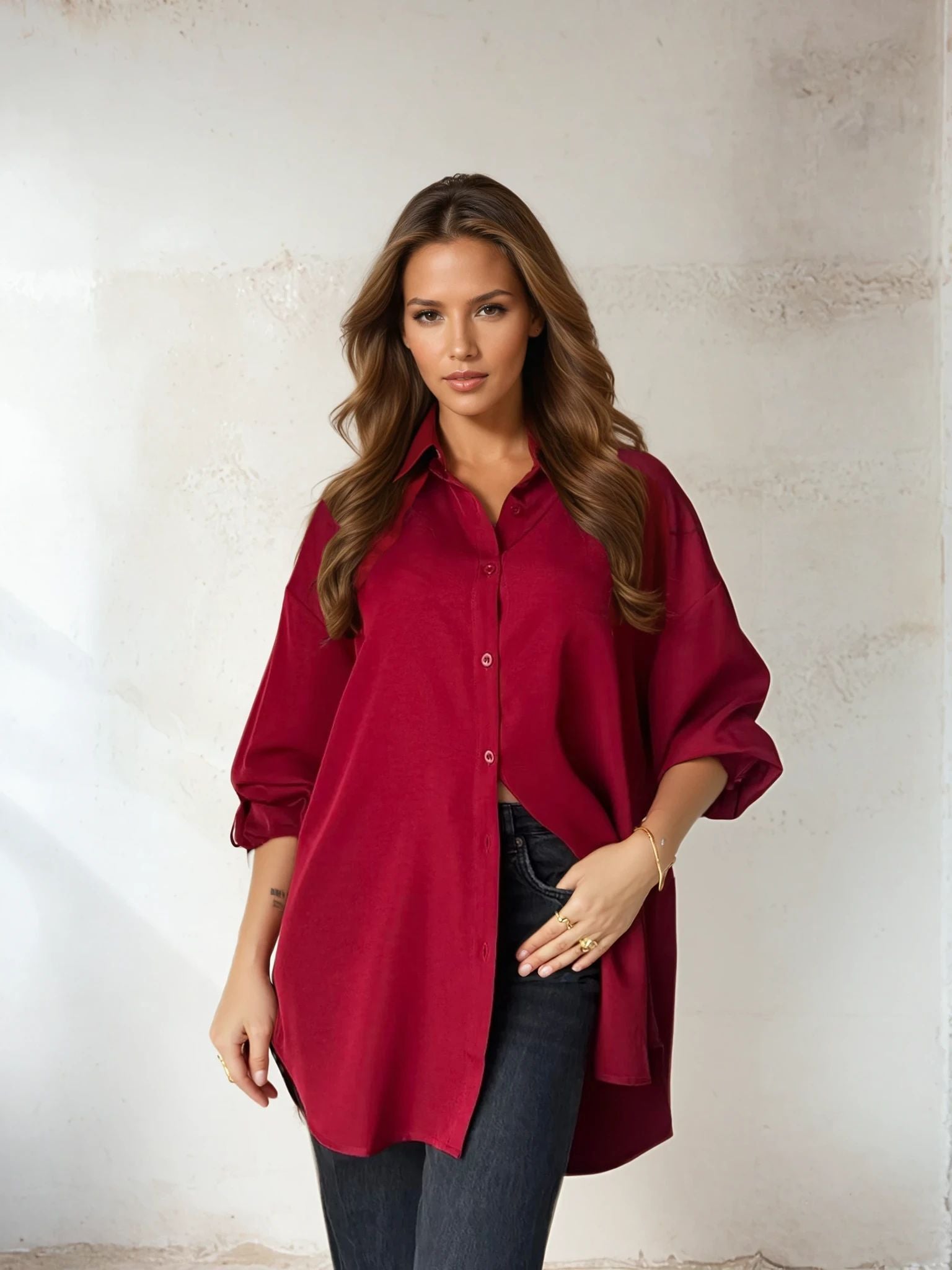 Shirt oversized dark red