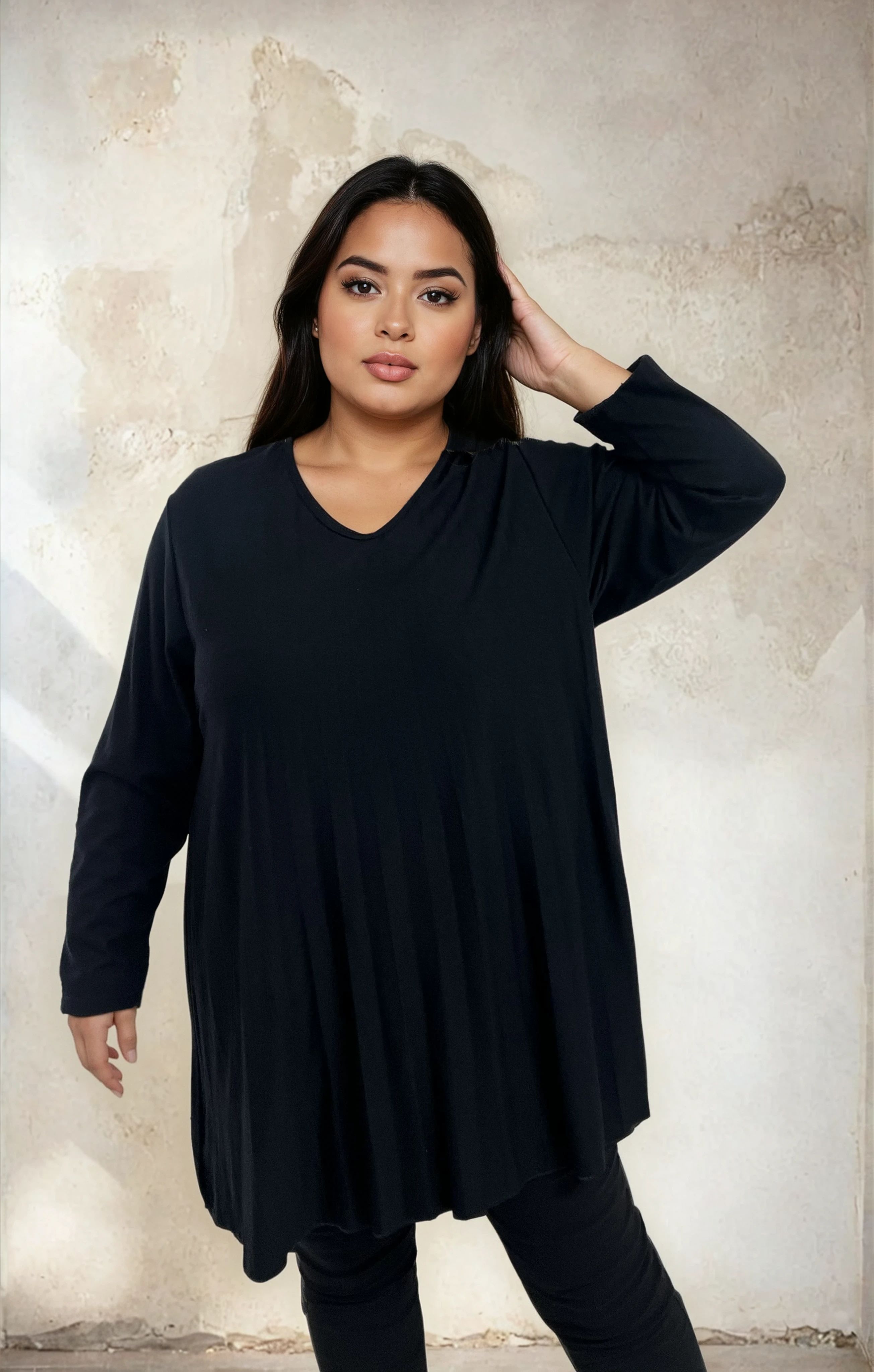 Tunika Annika is a soft and elegant tunic that combines a timeless silhouette with beautifully pleated structure. The model has a relaxed fit with V-ring and lightly downed shafts that provide a nice and compliant case. The discreet pleicures highlight the fine luster of the fabric and give the garment a sophisticated feel.