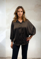 Elegant and stylish blouse with a beautiful fall and extra volume over the sleeves. The wide one the butterfly sleeve creates an airy, soft silhouette and gives the blouse an exclusive expression. 3/4-length sleeves and a generous fit make it easy to wear and very flattering on different body types.