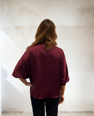 Elegant and airy blouse from Mirelle Design, made in Italy. The transparent checkered fabric together with the wide, softly falling the butterfly sleeves creates an exclusive and stylish look. The smock at the cuffs provides a beautiful finish and creates balance in the voluminous silhouette.