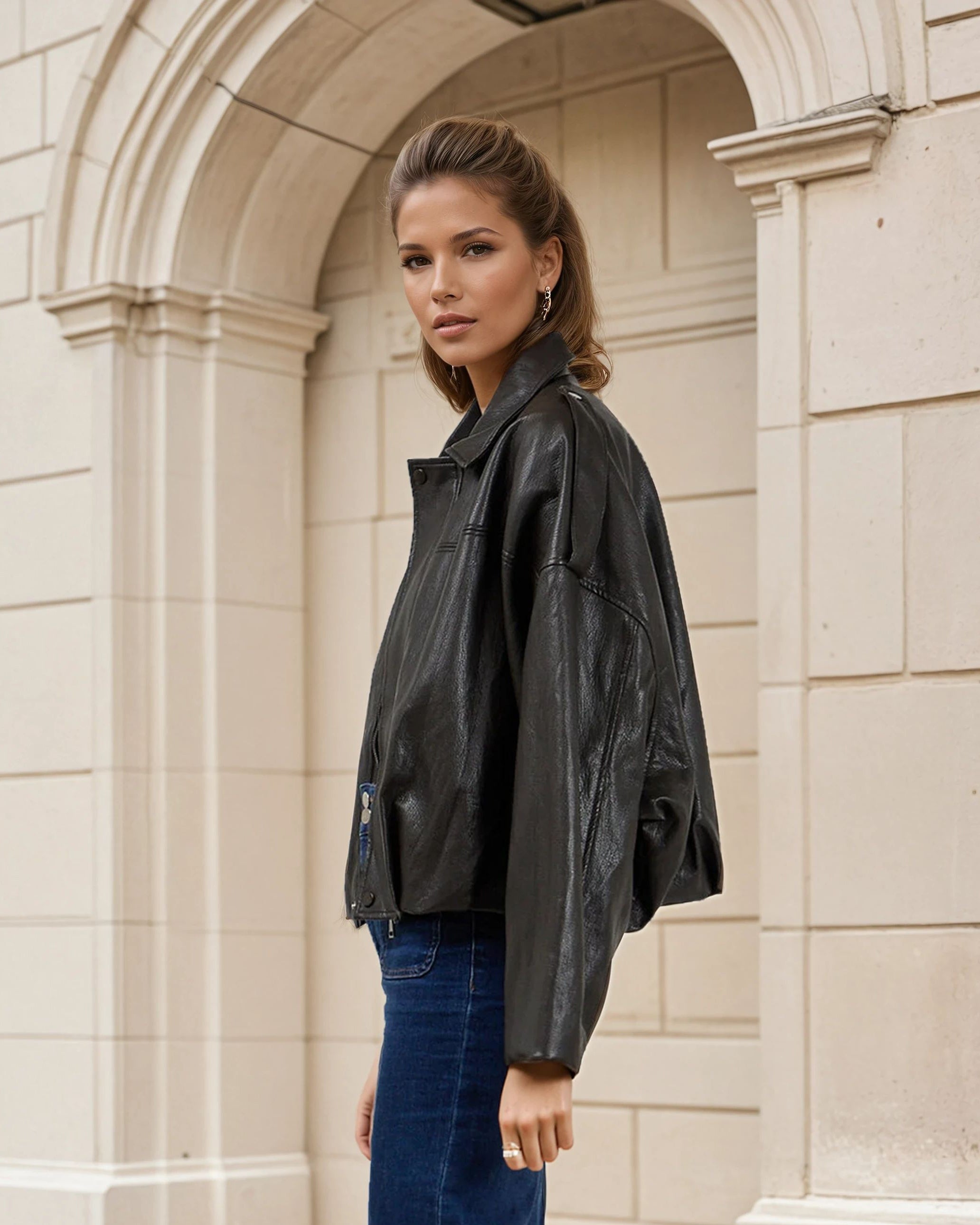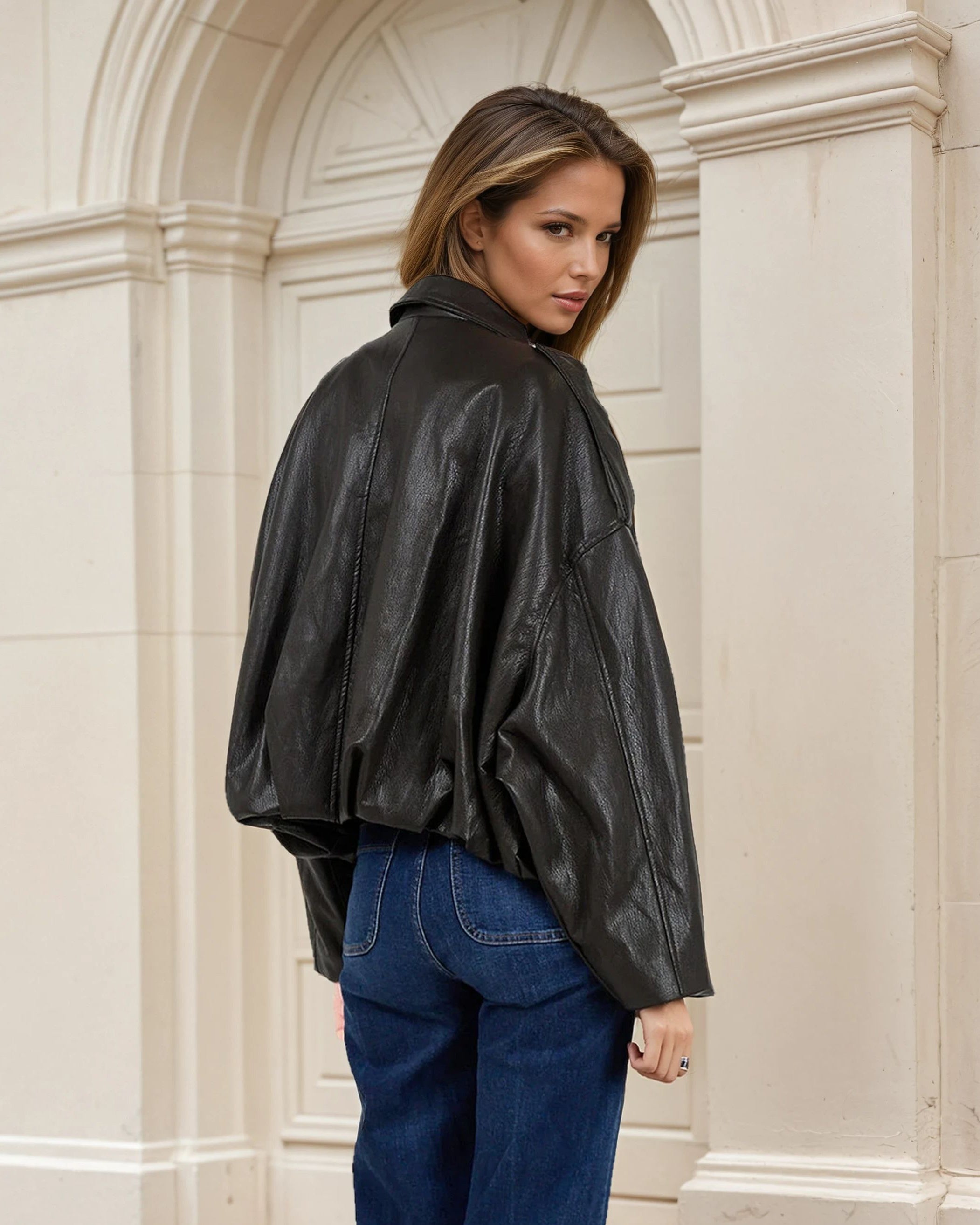 Jacket with leather look