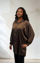 Stylish and elegant oversized shirt in a soft viscose mix with a beautiful silky fall. The generous fit creates an airy and flattering silhouette that suits many body types. The shirt has a classic buttoning, collar and wide sleeves with cuffs that give a modern and relaxed expression.