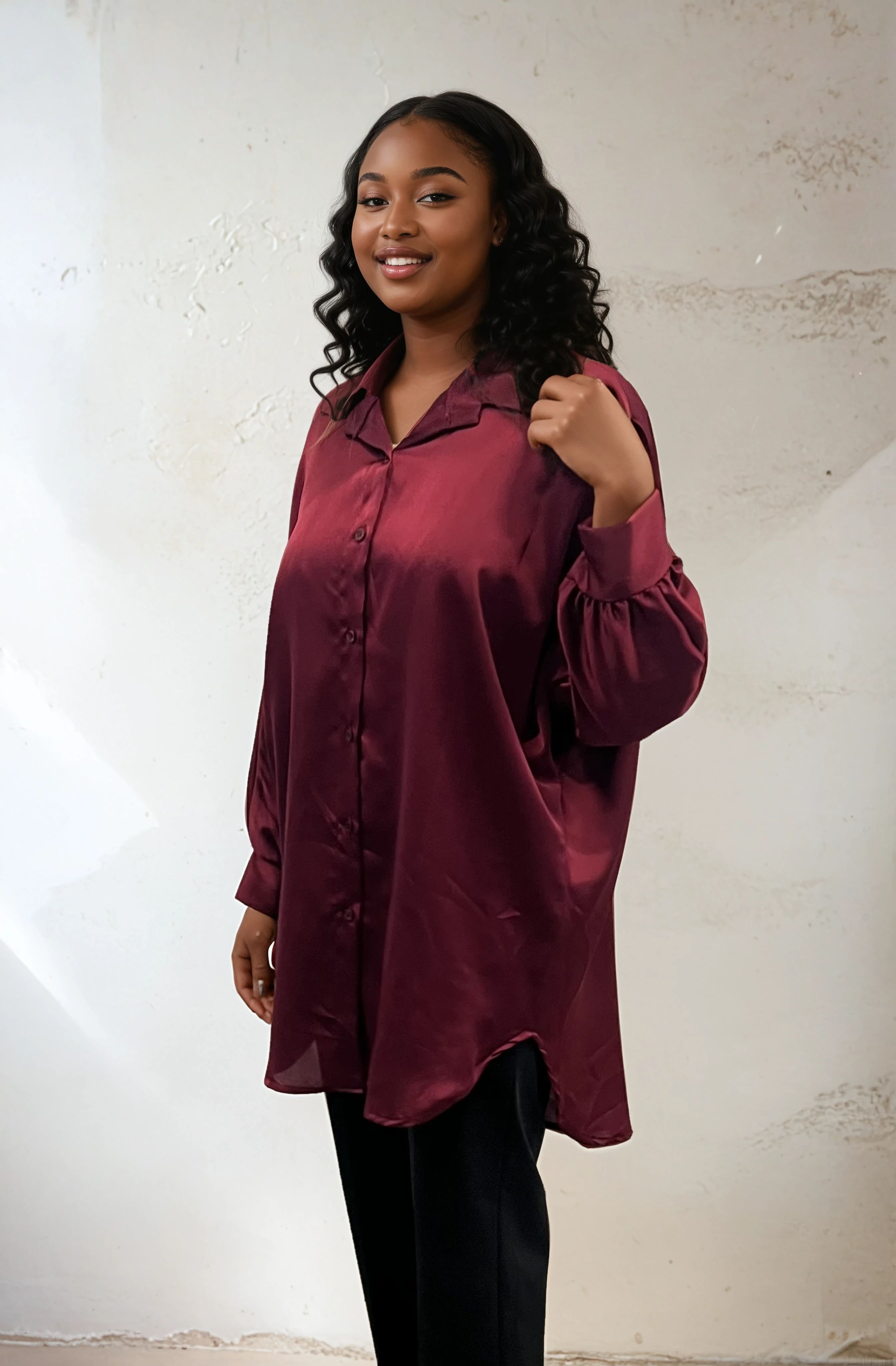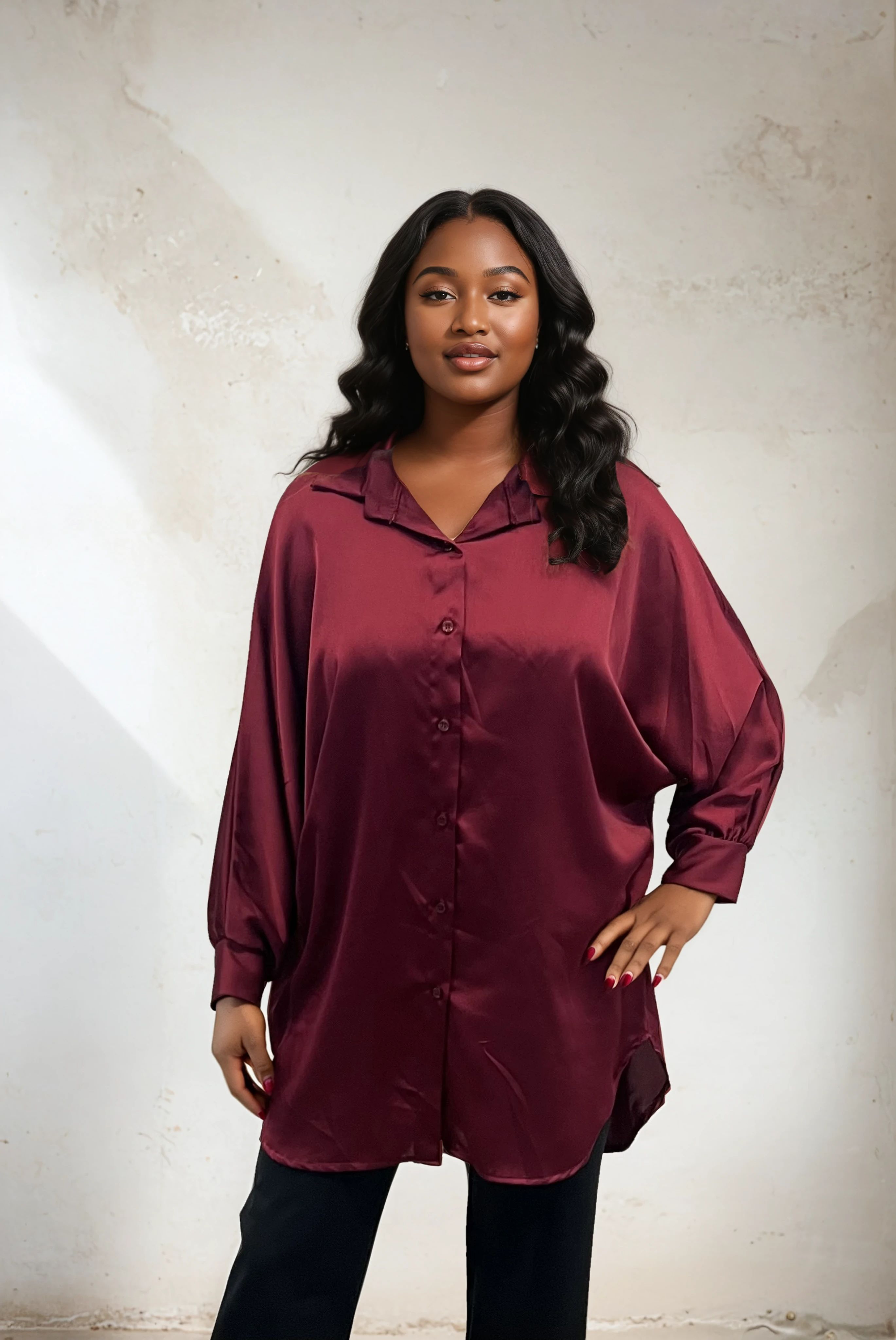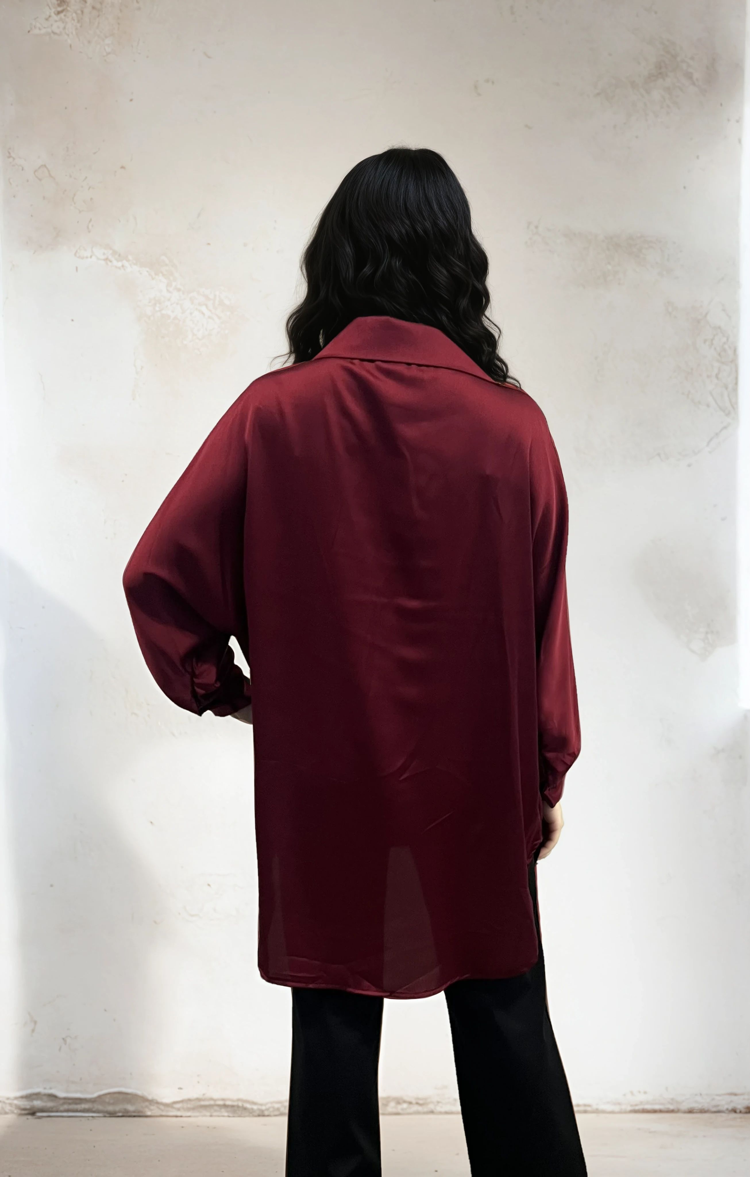 Blouse with wide butterfly sleeves - dark red, brown and beige