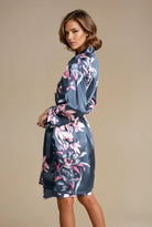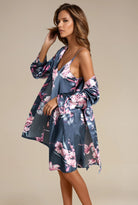 The floral pattern in muted tones gives a sophisticated and harmonious look, while the smooth satin quality falls beautifully and feels gentle on the skin. The nightgown has narrow, adjustable shoulder straps and an elegant V-neckline, while the dressing gown has wide sleeves and a tie waist for a perfect and comfortable fit.