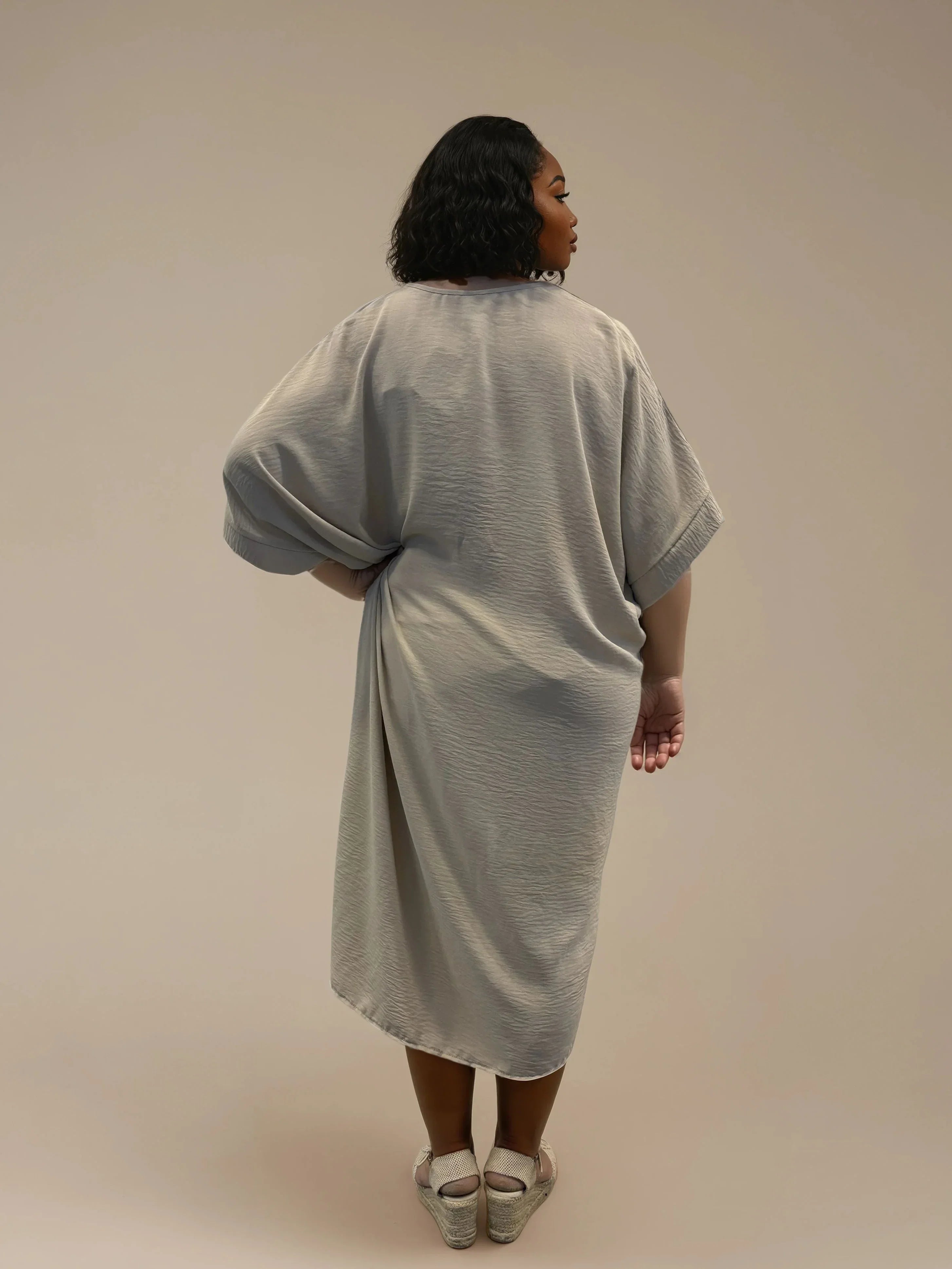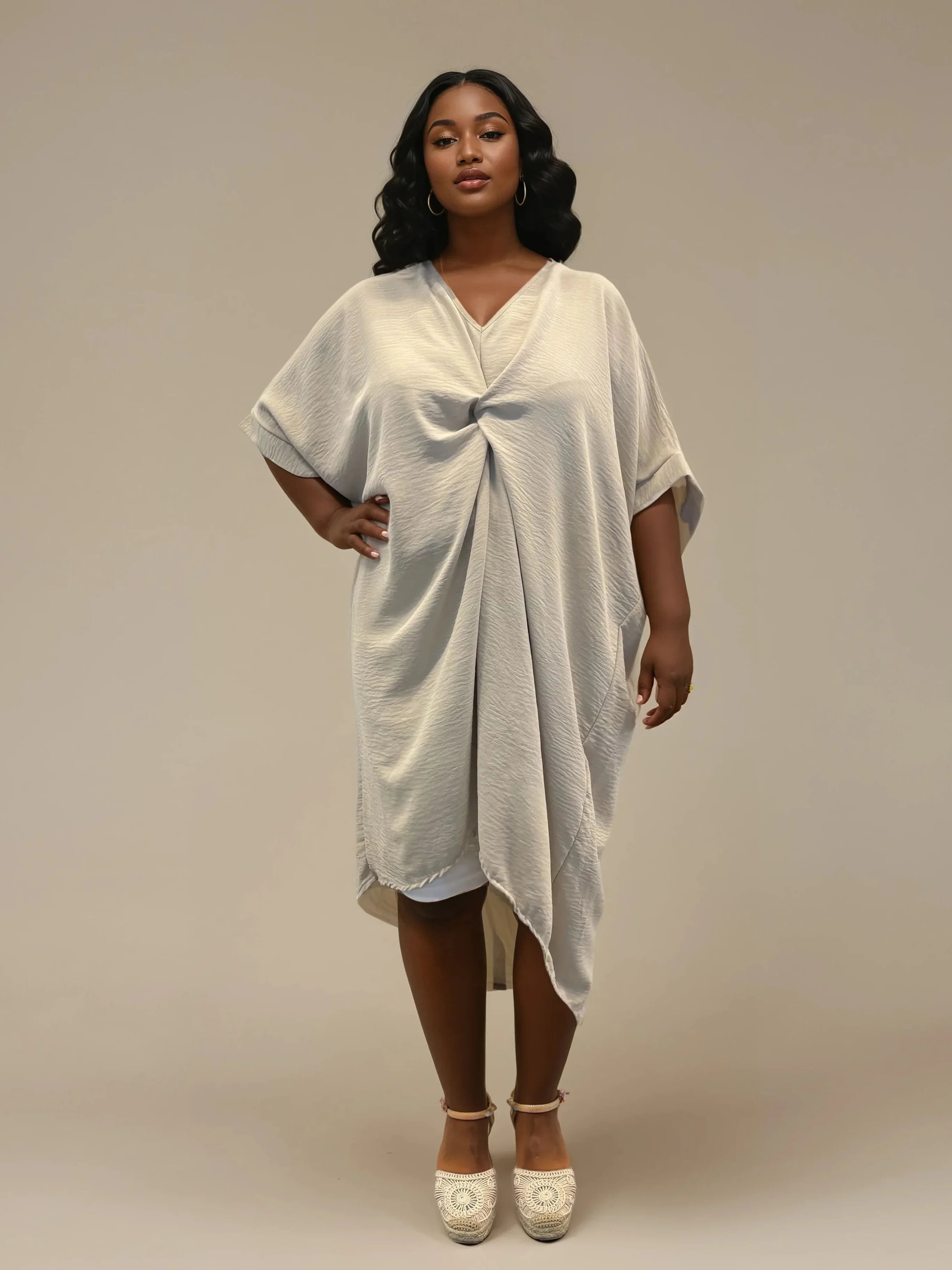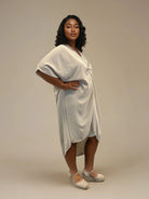 A feminine and elegant dress with a charming knot detail at the bust - that flirts away and creates a beautiful drape ✨. The model has hollow sleeves and generous sleeves that provide a relaxed, but stylish fit. The dress is further back than front and falls softly and flattering along the body - perfect both everyday and for a party! 🌸
