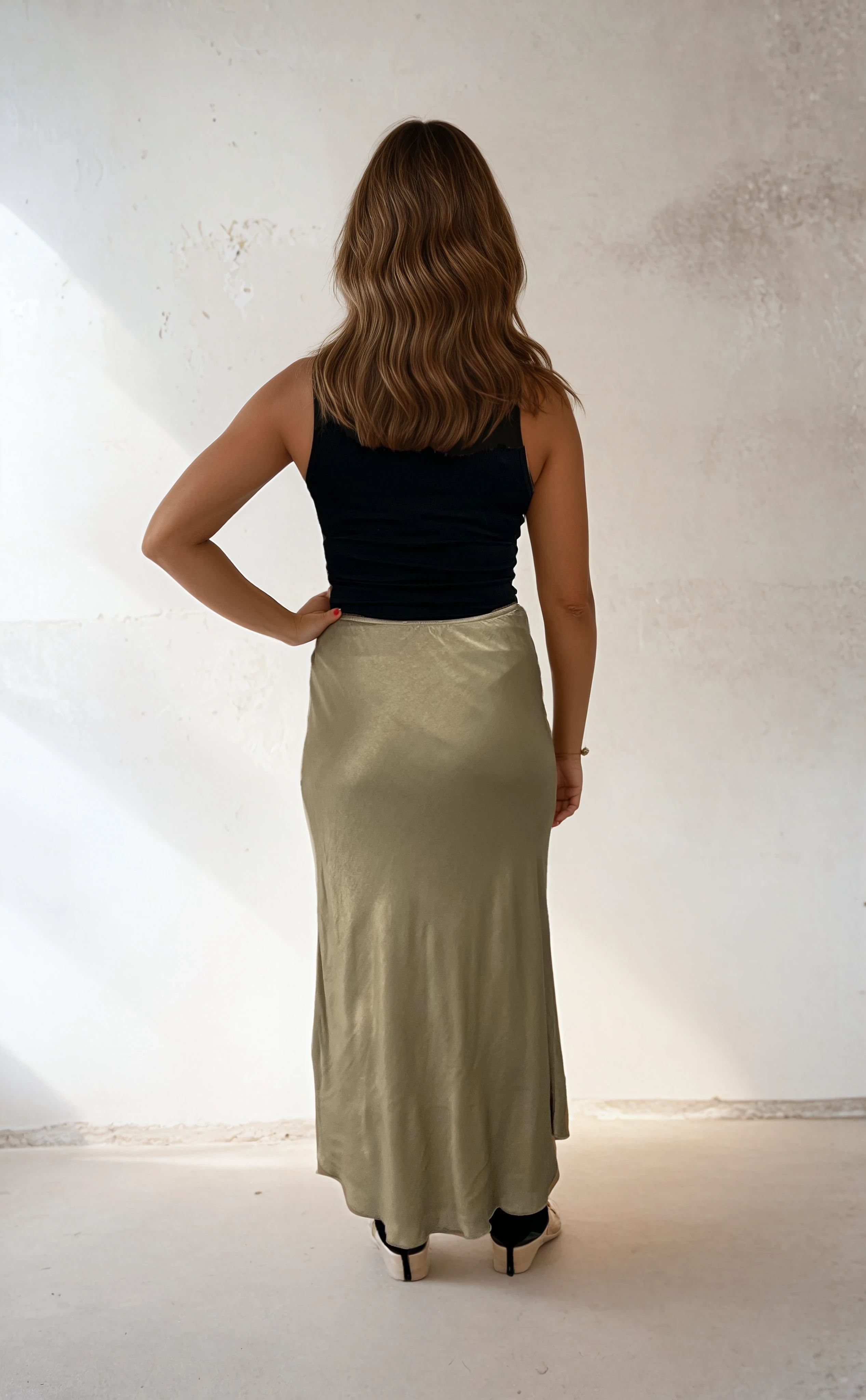 Elegant, timeless and flexible ✨ Skirt Tuva from Mirelle Design is a long, beautifully shimmering skirt with a soft fall that accentuates a feminine silhouette. The elastic waist makes it comfortable to wear and provides a perfect fit regardless of the occasion. The skirt has a slightly flared shape that moves beautifully when you walk - a stylish garment that works just as well for everyday wear with a knitted sweater as for a party with a tank top or blouse.