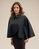 Camilla is a poncho jacket that combines style and functionality. The short Cape-like model with decorative buttons gives a sophisticated feel, while it is easy to wear over both dress, blouse or knitted sweater.