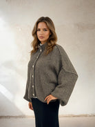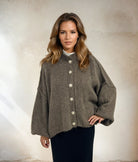 The cardigan has a loose oversizes and has a relaxed fit with wide sleeves and decorative buttons at the front. The soft material mixture gives a luxurious feel and makes the garment perfect for both everyday and more festive occasions. Available in three classic colors - black, taupe and dark taupe - which are all easy to match with both jeans, skirt or dress.