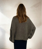 Knitted cardigan with snap dark taupe