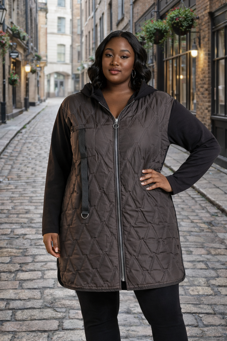 Jacka Leia är en modern och stilren jacka med spännande materialkombination. Fronten har en quiltad design som på bilden, vilket ger ett trendigt och exklusivt uttryck, medan rygg och ärmar är i ett mjukt och följsamt material som skapar en bekväm och smickrande passform. Baksidan har samma släta material som ärmarna.