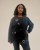Jacket Ringo is a modern and trendy jacket with unique metal rings as decorative details - a real eye -catcher that lifts any outfit. It has a free fit with classic strokes and button closure, perfect to style both everyday and party.