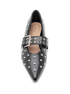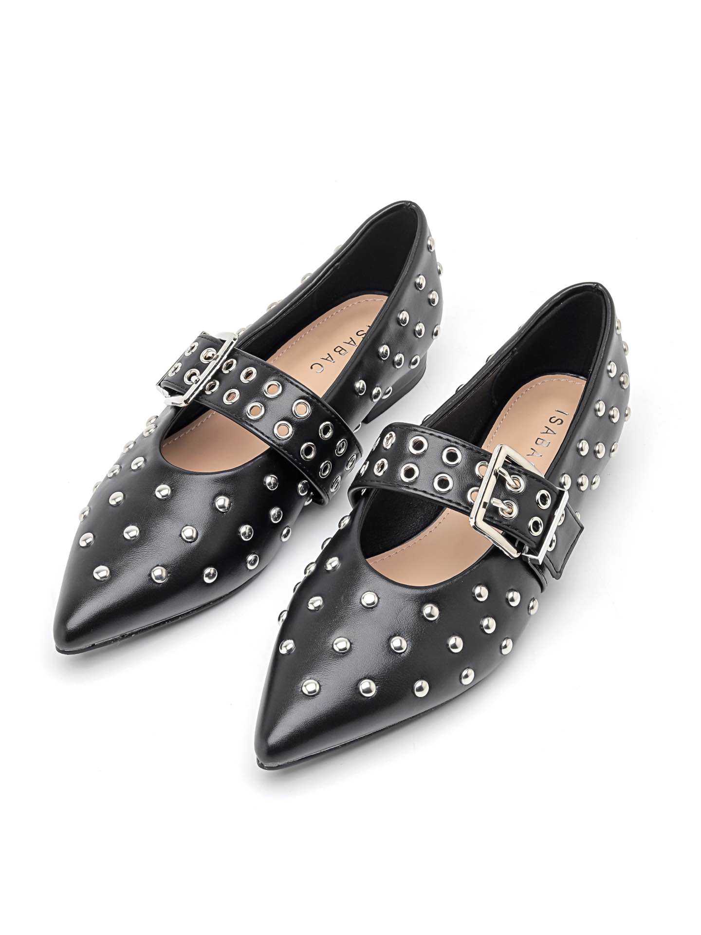 Give your outfit a tough but elegant touch with these black pointy ballerinas with studs. The classic Mary Jane model gets a modern lift with decorative silver studs that give it a trendy and confident look. The pointed toe creates a feminine silhouette, while the adjustable strap with buckle provides both style and a good fit.