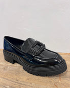 Lacquered loafers with decorative buckle - trendy elegance