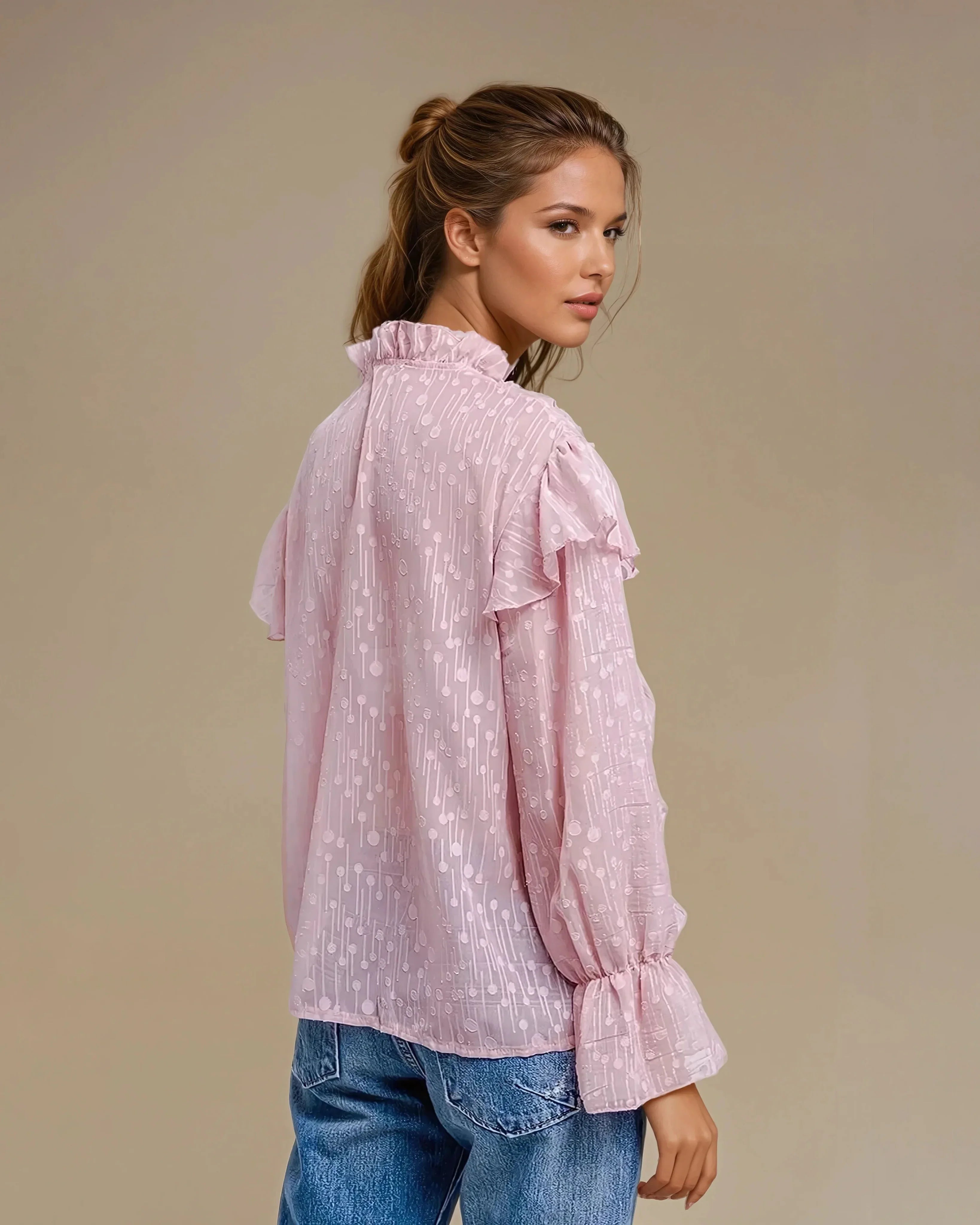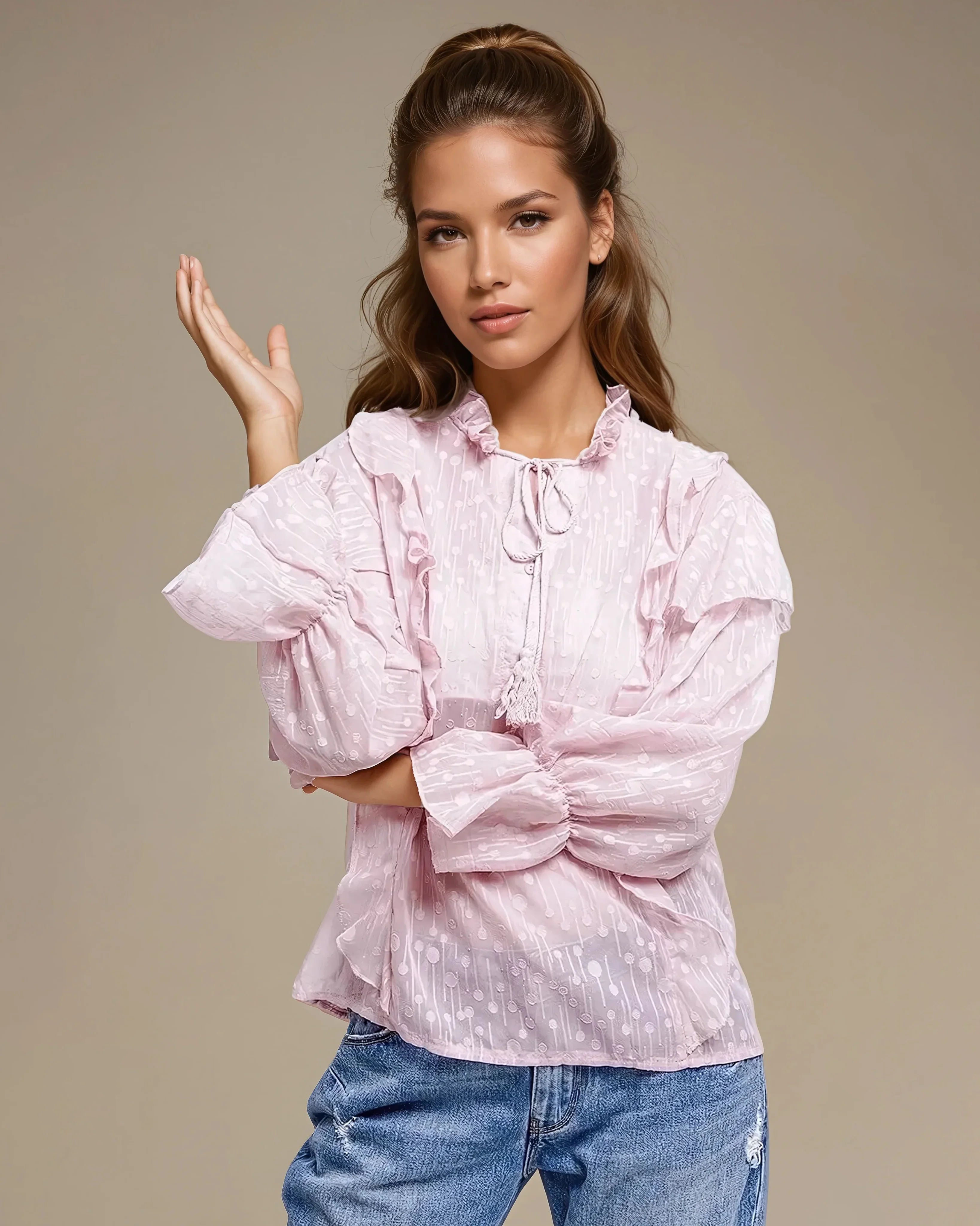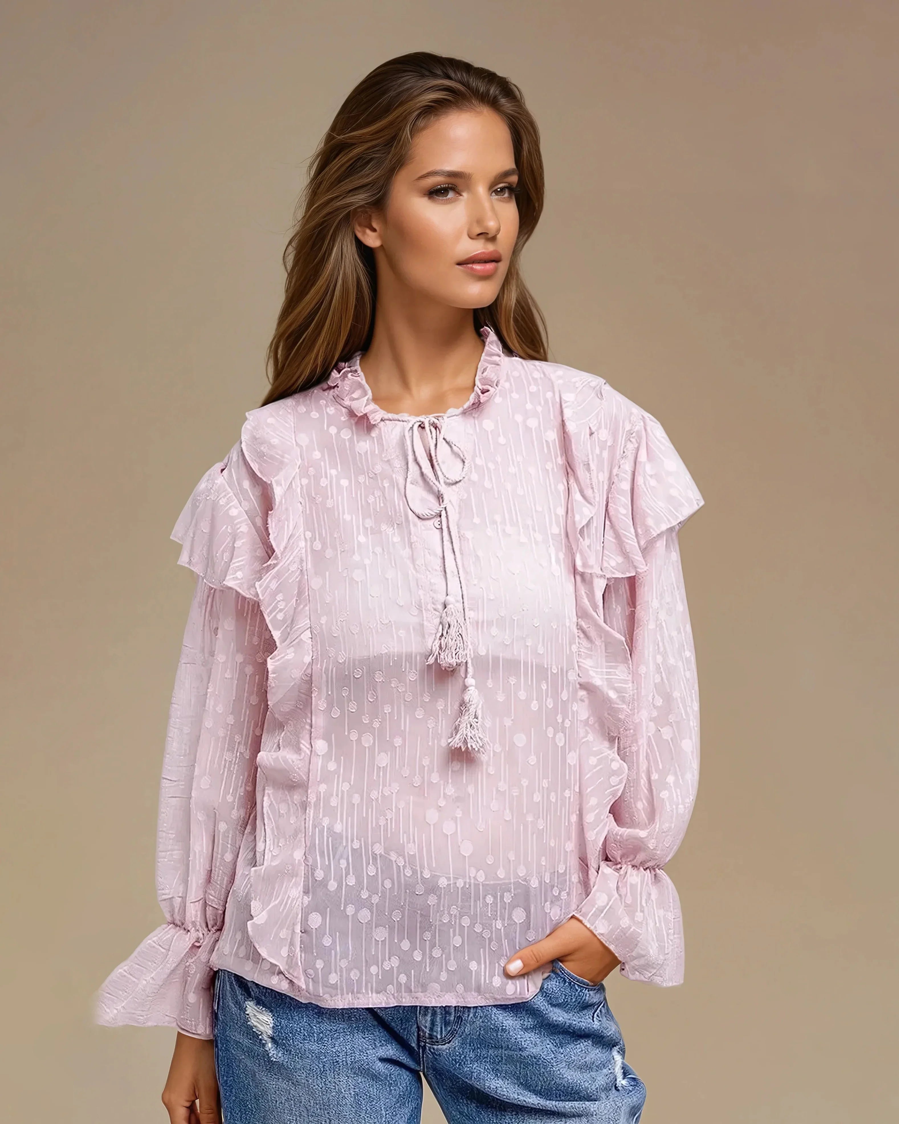 An elegant and airy Transparent blouse with Decorative dots And feminine design. Made in 100% polyester, which gives a light and airy case. Tie at the neck And long sleeves create a stylish and sophisticated look - perfect to wear both everyday and party!