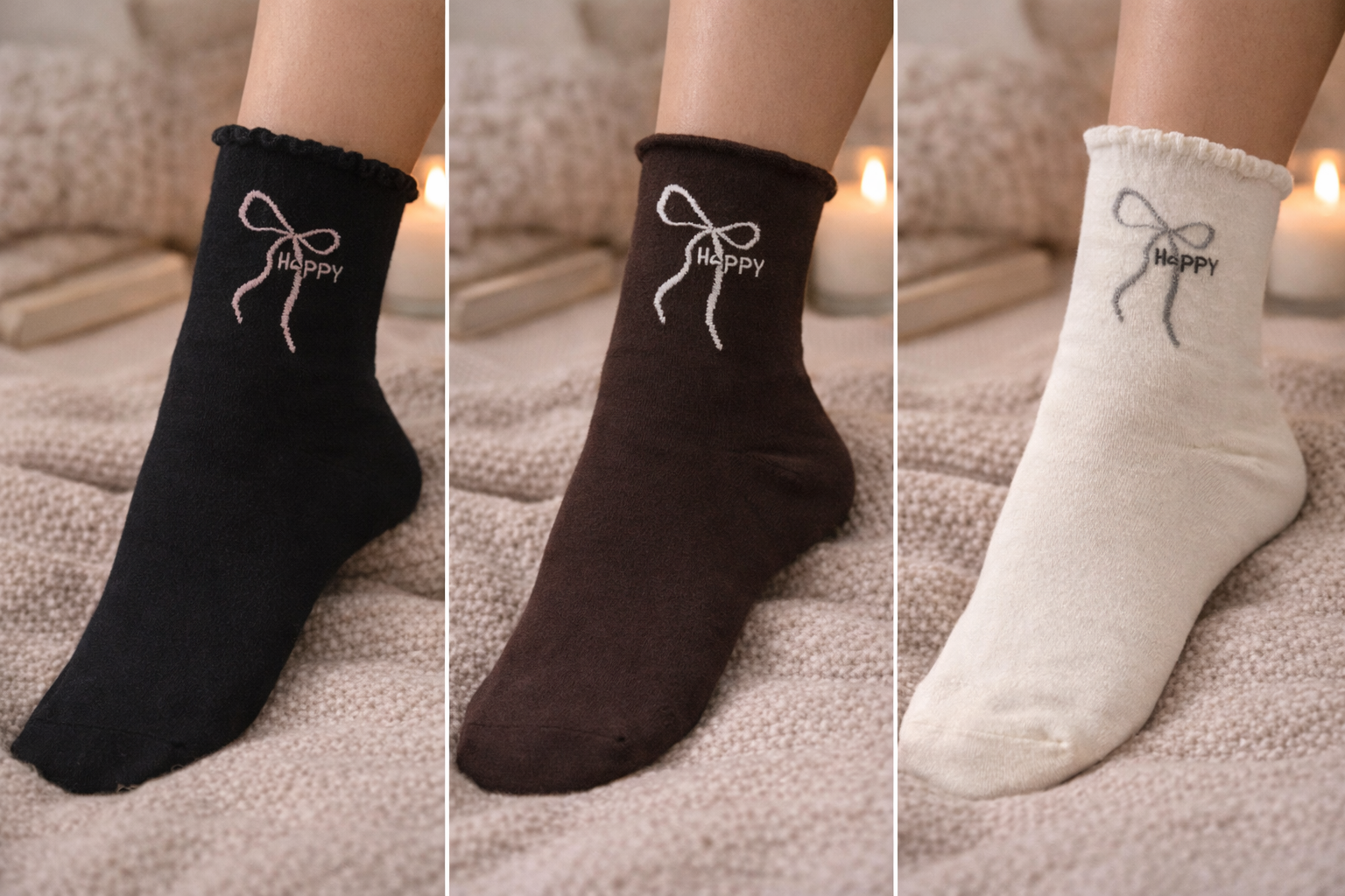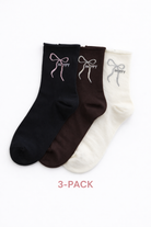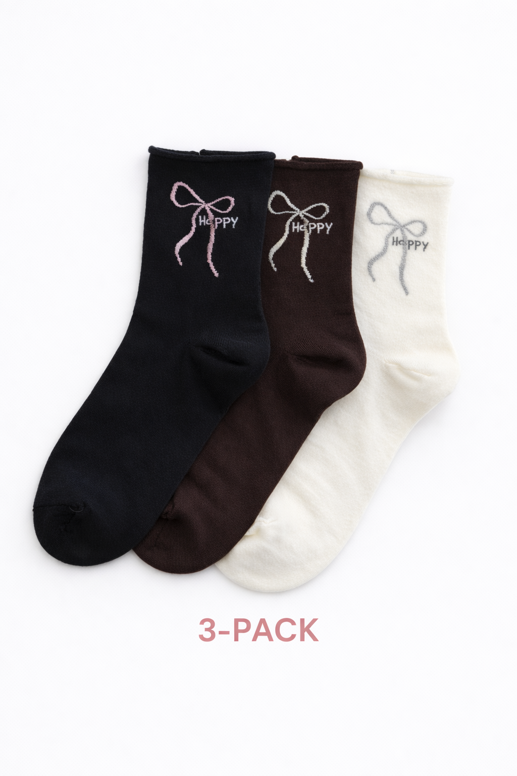 Ett stilrent 3-pack strumpor med söt rosett och textdetalj som ger din outfit det lilla extra. Perfekta för dig som vill kombinera komfort med en feminin och trendig touch.