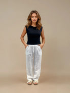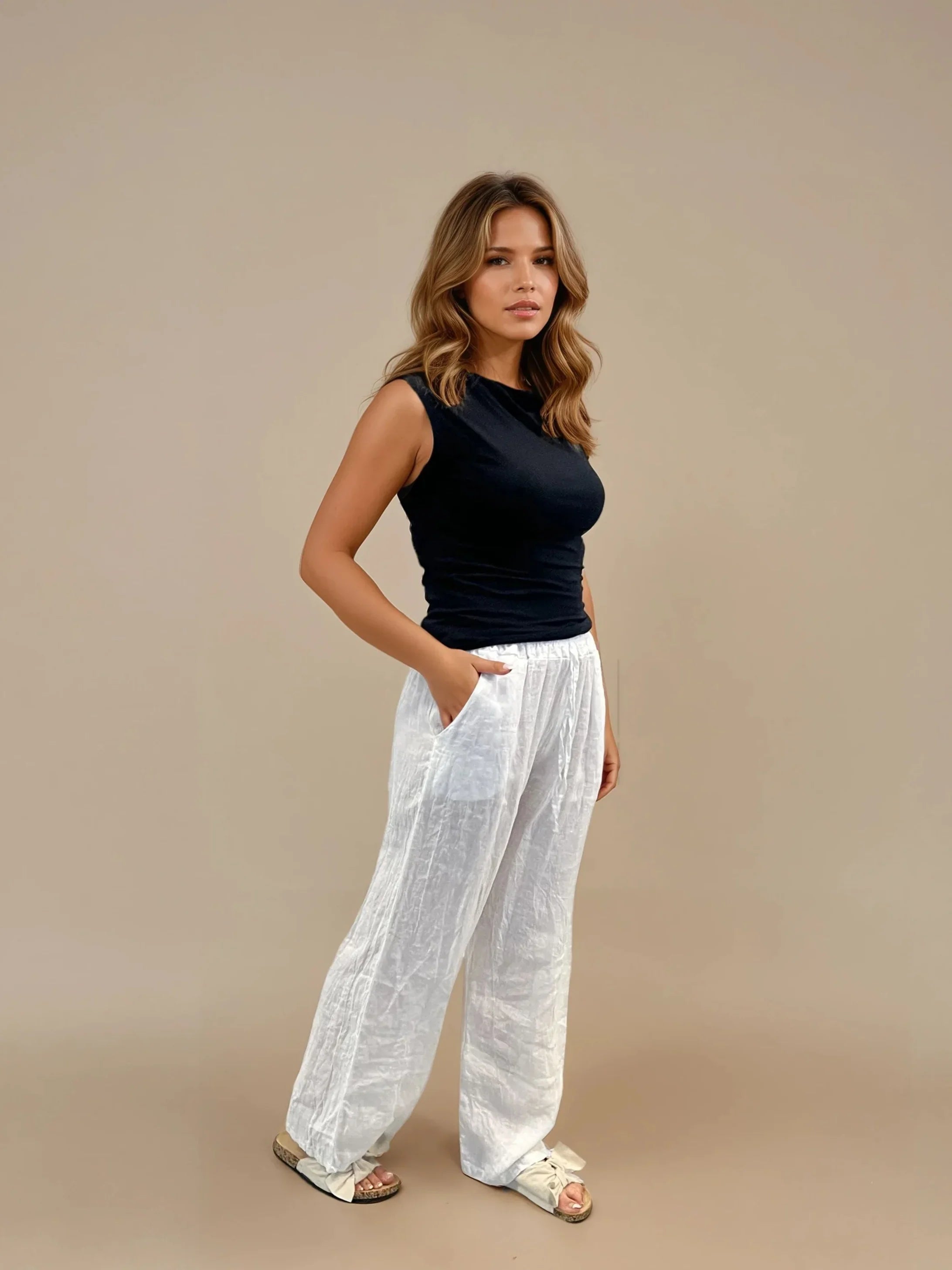 Tutustu täydelliseen mukavuuden ja tyylin yhdistelmään suositun kanssa Felicia-housut! Valmistettu viileässä pellavakankaassa, joka hengittää - täydellinen kuumille päiville ☀️