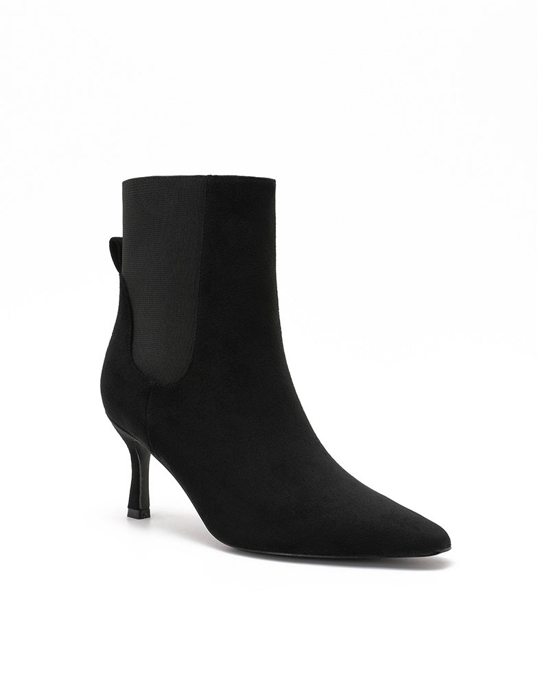 Yksityiskohdat: Terävä varpa, vetoketju sivulla, joustavat osat paremmin istuvuutta varten