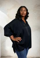 Valmistettu ylellisessä sekoituksessa rayonia ja viskoosia, antaen kevyen kiiltävän ja kauniin pudotuksen. Pitkät hihat, joissa on hienovarainen Puff Power ja ryppyinen kaulus, lisäävät romanttisen kosketuksen. Monipuolinen vaate, joka on helposti sovitettu sekä farkut että hame.