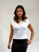 🤎 Ribed V-renkaan t-paita, jolla on pitsi-yksi koko