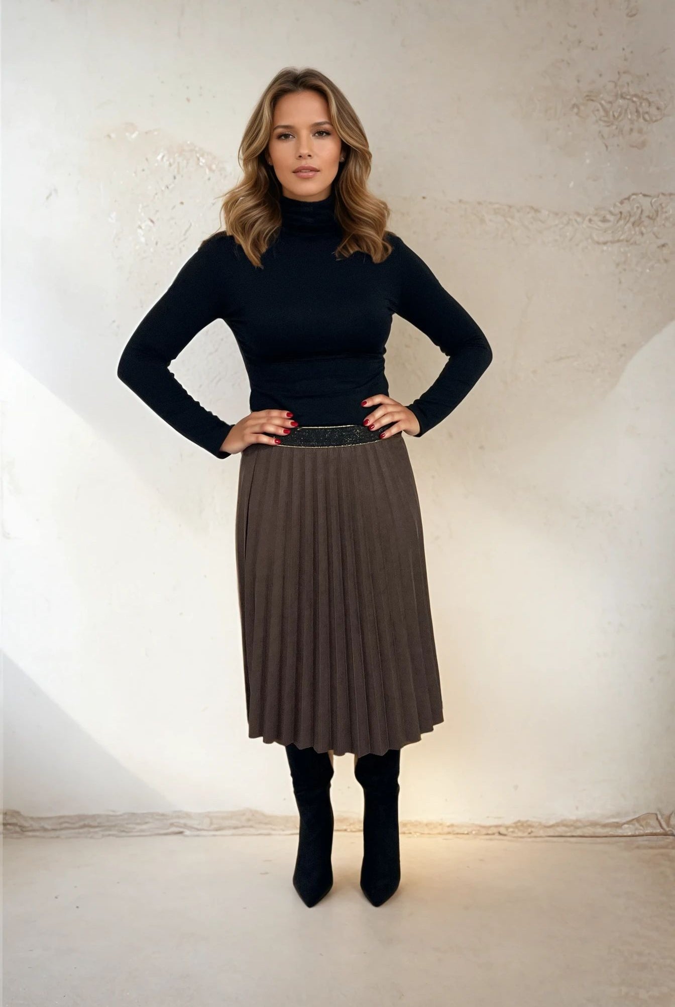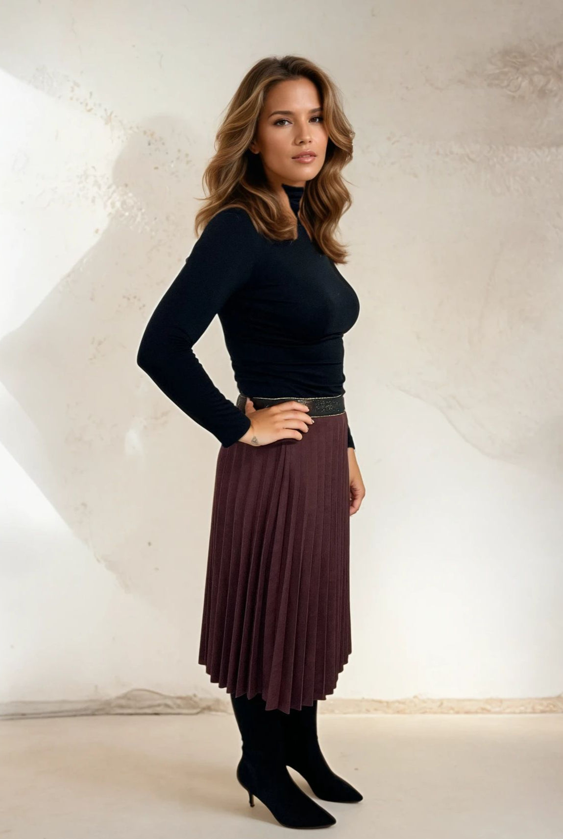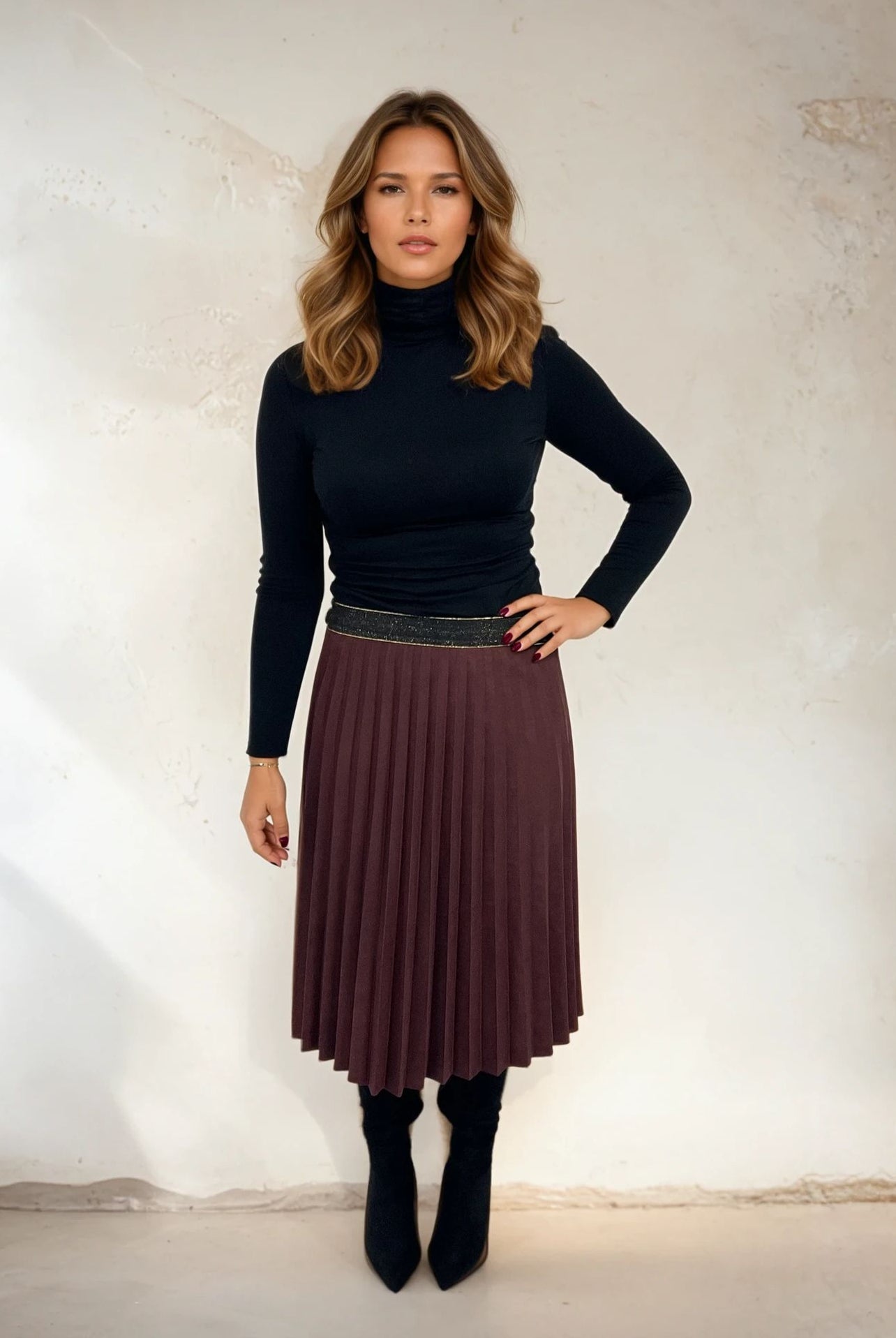 3. Vekkihame: Laskostetussa hameessa on taitoksia, jotka antavat vaatteen liikkumisen ja äänenvoimakkuuden, mikä tekee siitä hauskan ja trendikkään vaihtoehdon. Laskostettu tyyli voidaan mukauttaa moniin erilaisiin tilanteisiin sen tyylin mukaan. Esimerkiksi metallinen laskostettu hame voidaan käyttää yksinkertaisella t-paitalla ja lenkkarilla rento ilme tai kimalteleva yläosa ja korkokengät juhlallisemman tunnelman saamiseksi.