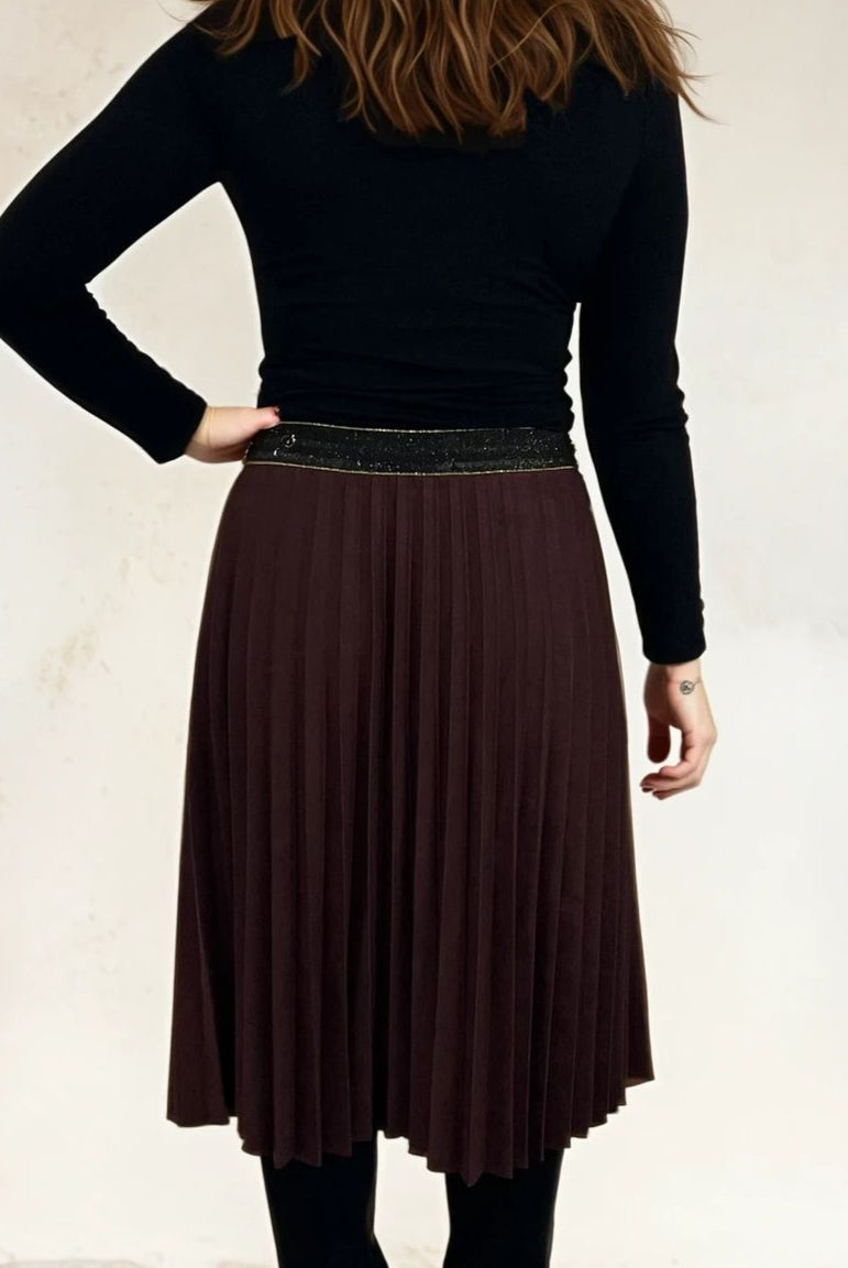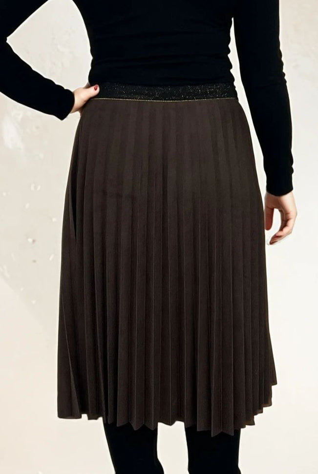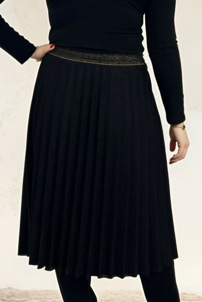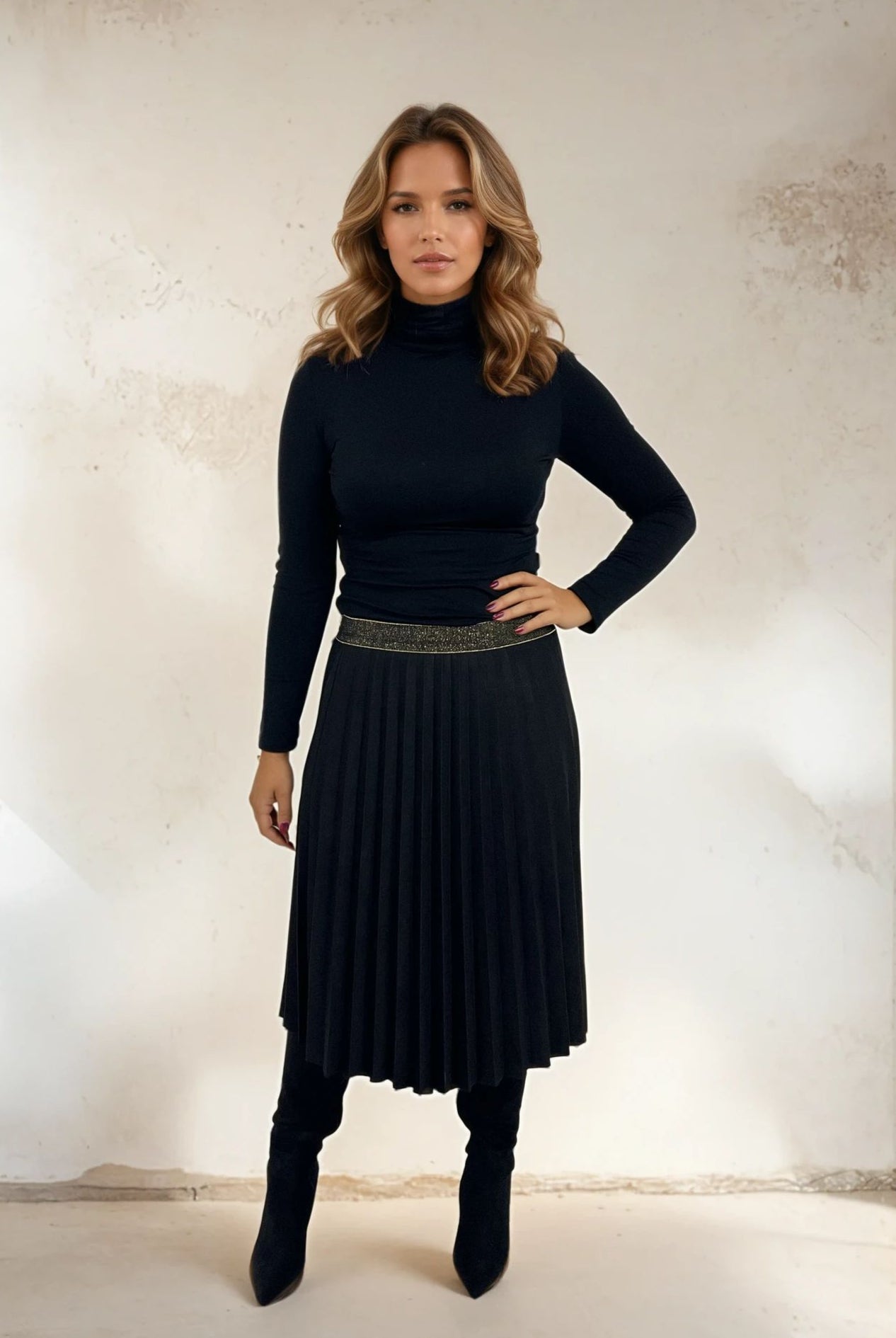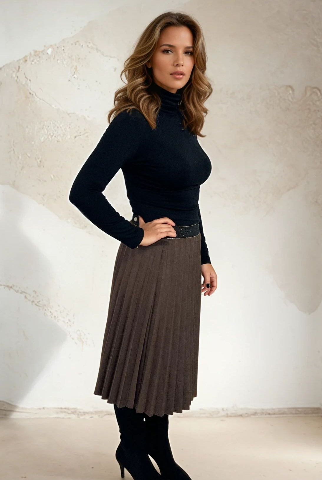 3. Vekkihame: Laskostetussa hameessa on taitoksia, jotka antavat vaatteen liikkumisen ja äänenvoimakkuuden, mikä tekee siitä hauskan ja trendikkään vaihtoehdon. Laskostettu tyyli voidaan mukauttaa moniin erilaisiin tilanteisiin sen tyylin mukaan. Esimerkiksi metallinen laskostettu hame voidaan käyttää yksinkertaisella t-paitalla ja lenkkarilla rento ilme tai kimalteleva yläosa ja korkokengät juhlallisemman tunnelman saamiseksi.