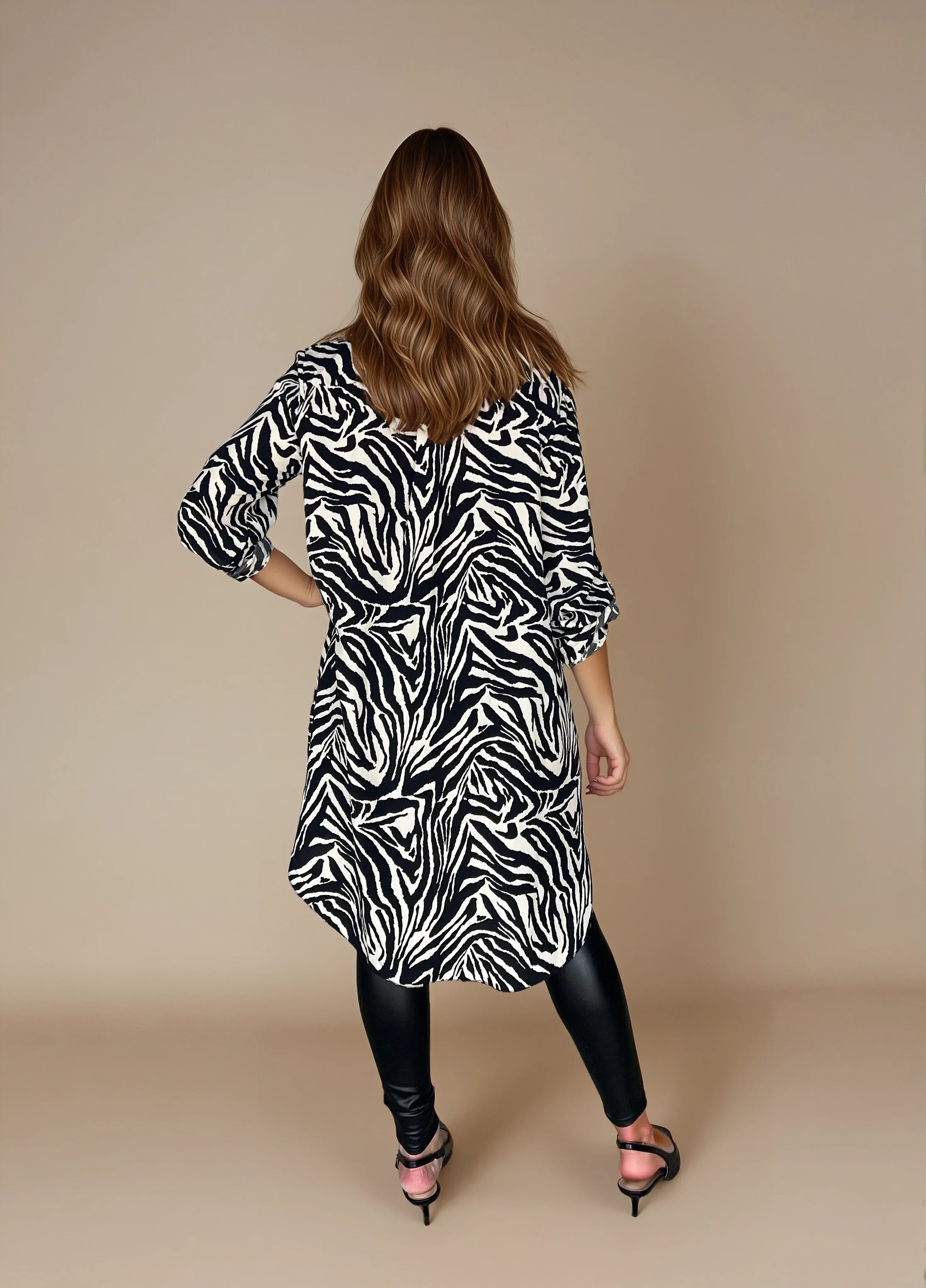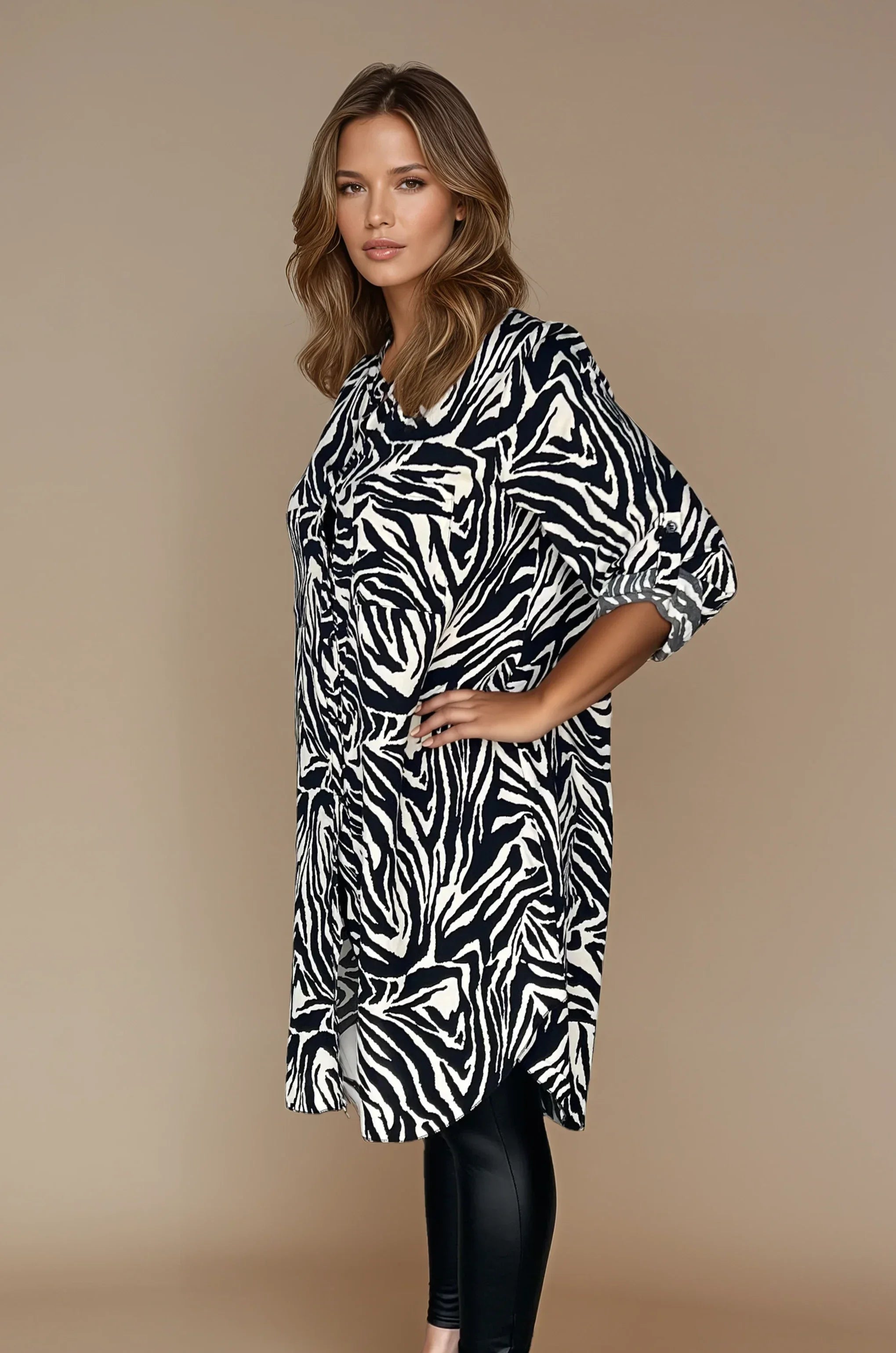 Tehdä lausunto tämän kanssa seepra -kuvioitu paitamekko 🦓. Hänen ylisuuri istuvuus Onko se sekä mukava että trendikäs - täydellinen pukeutumiseen pukeutumisena tai avoinna housujen päällä rentouttavamman ilmeen vuoksi.