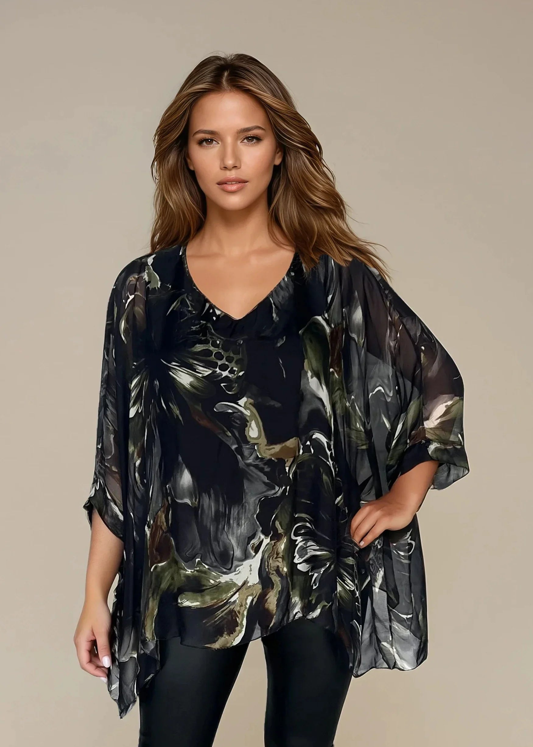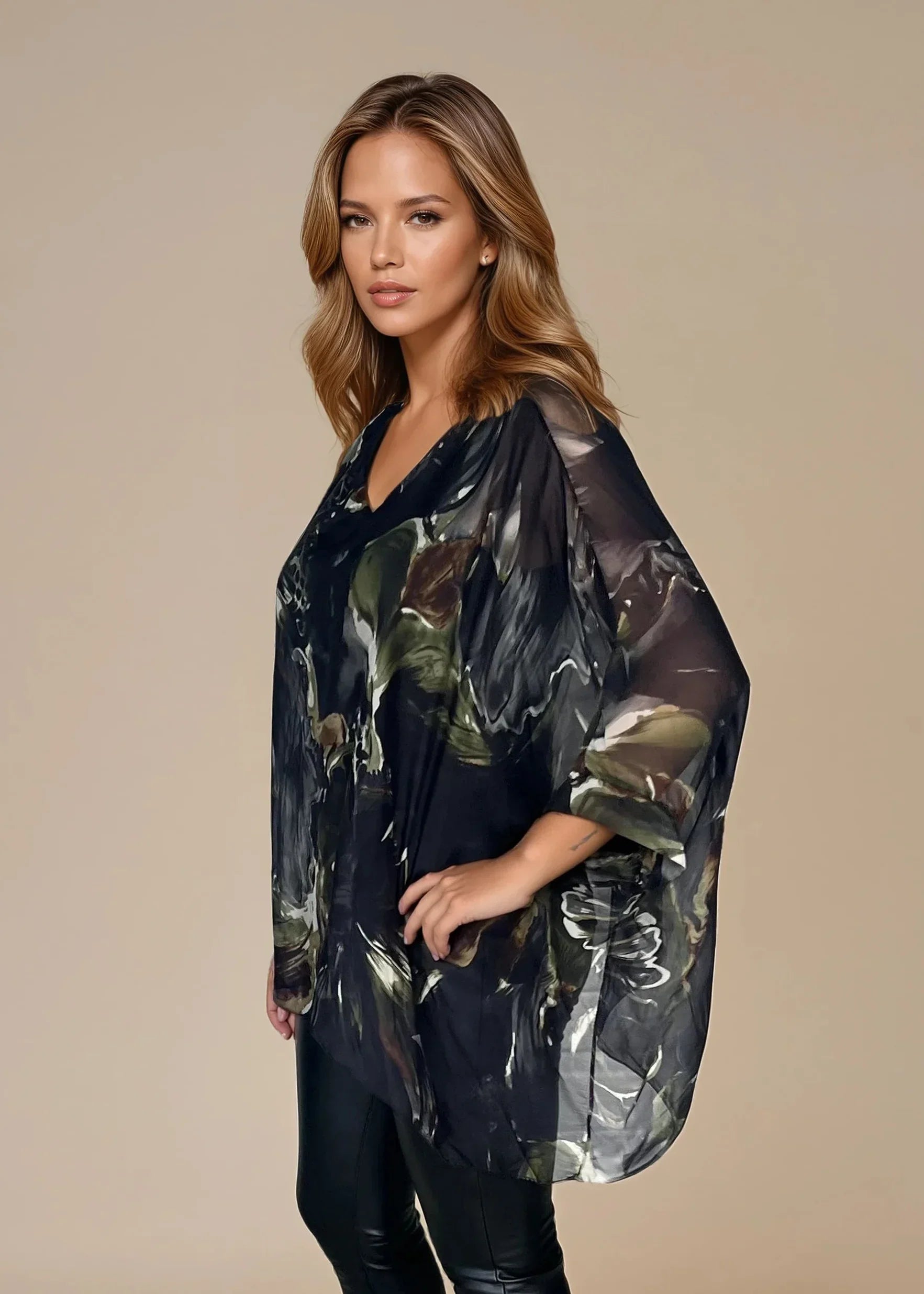 Tunika Sanna on ajaton ja tyylikäs tunika yksivärisessä ja kuvioidussa versiossa. Valmistettu Italiassa 🇮🇹 yksinoikeudella 70 % viskoosin ja 30 % silkin sekoitusta, jolloin vaate on kaunis kiilto ja pehmeä, yhteensopiva tapaus. Viskoosin (95 %) ja elastaanin (5 %) joustava sisäpellava tarjoavat ylimääräisen mukavuuden ja imartelevan istuvuuden.