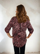Tyylikäs pusero 100 % viskoosia suutarin kaulus ja pyöreä pääntie. Napit menevät rintaan asti ja ne on peitetty kimaltelevalla, yhteensopivalla kankaalla – sama hieno yksityiskohta kuin rintataskussa. Tämä antaa puserolle ainutlaatuisen ja hyvin tehdyn ilmeen. Malli on takaa pidempi kuin edestä ja siinä on hihat, jotka voidaan taittaa alas pidempään istuvuutta varten, mikä tekee siitä sekä käytännöllisen että monipuolisen.