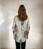 Tyylikäs pusero 100 % viskoosia suutarin kaulus ja pyöreä pääntie. Napit menevät rintaan asti ja ne on peitetty kimaltelevalla, yhteensopivalla kankaalla – sama hieno yksityiskohta kuin rintataskussa. Tämä antaa puserolle ainutlaatuisen ja hyvin tehdyn ilmeen. Malli on takaa pidempi kuin edestä ja siinä on hihat, jotka voidaan taittaa alas pidempään istuvuutta varten, mikä tekee siitä sekä käytännöllisen että monipuolisen.