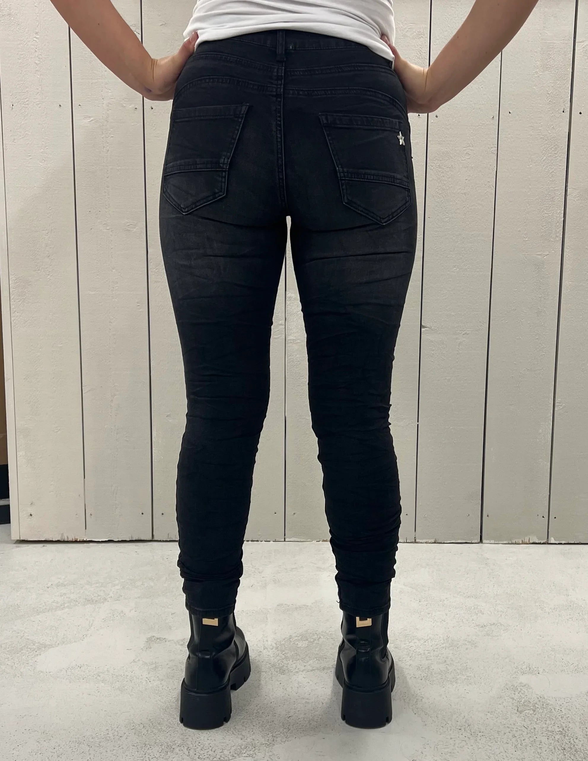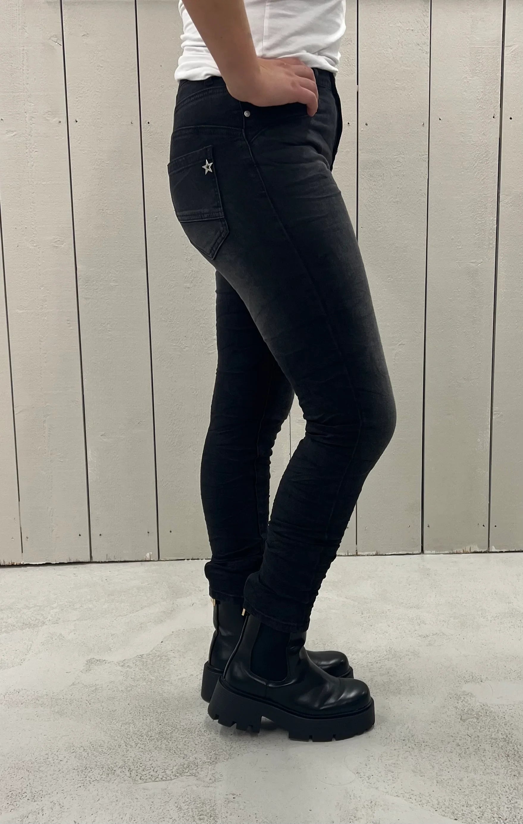 Takataskuista löydät räikeän, mutta silmien kiinnittävät tähtitiedot, jotka antavat farkuille henkilökohtaisen hahmon. Huomaa, että nämä farkut ovat kooltaan hiukan suuria, joten suosittelemme, että otat yhteyttä kokotaulukkoamme löytääksesi täydellisen istuvuuden.