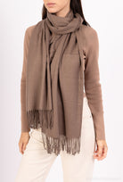 Ylellinen pehmeä huivi kashmir -seoksessa, joka tarjoaa sekä lämpöä että eleganssia. Antelias koko tekee siitä täydellisen pyyhkäisemisen hartioiden ympärille tai kuljettaa klassikkoa kaulan ympärillä ajattoman ja hienostuneen ilmeen saamiseksi.