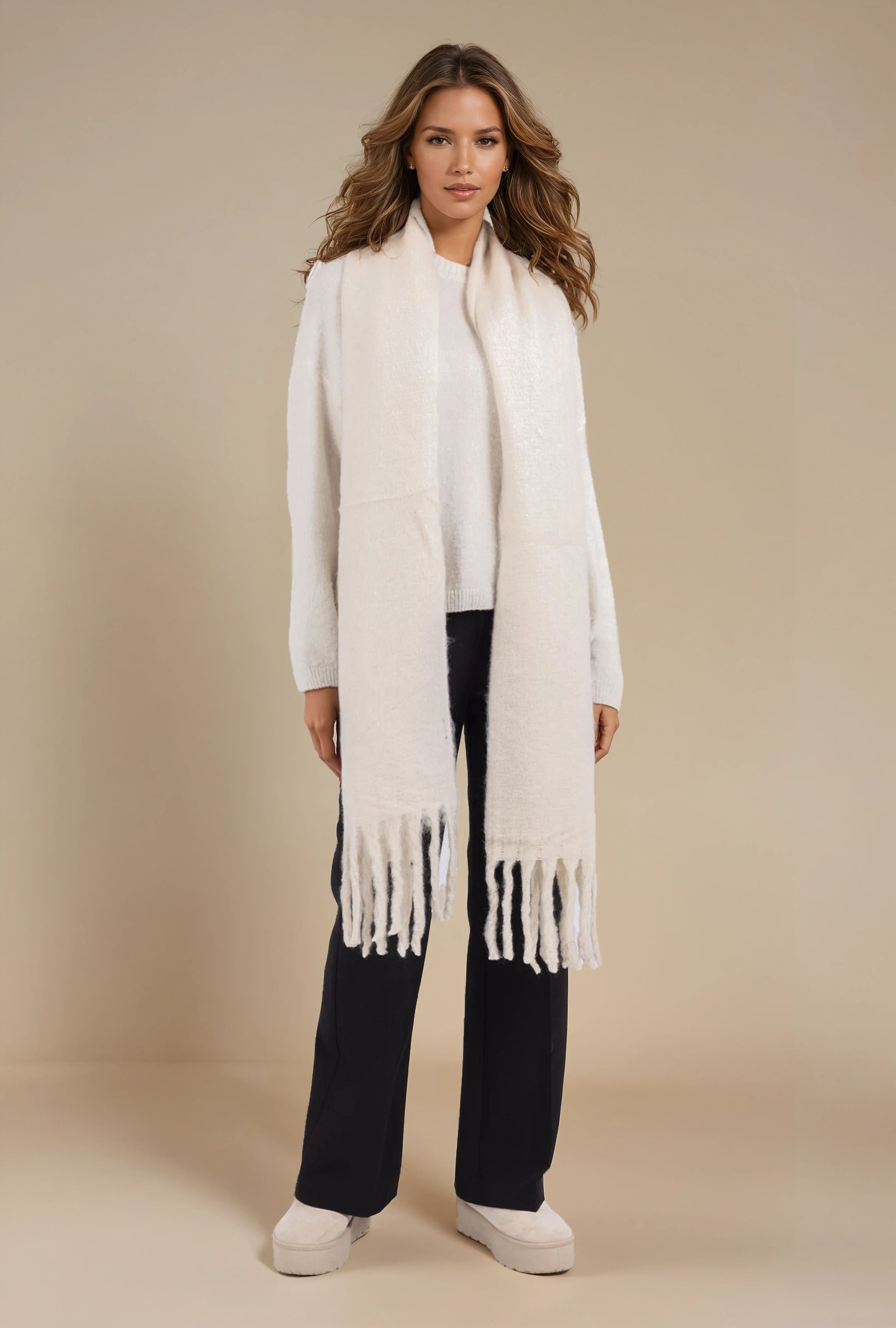 Une écharpe douce et réchauffante dans une taille généreuse avec des cils classiques et grossiers. Parfait comme châle et écharpe pendant les jours d'automne et d'hiver frais. La surface brossée donne une sensation luxueuse duveteuse, tandis qu'elle est facile et confortable à transporter.