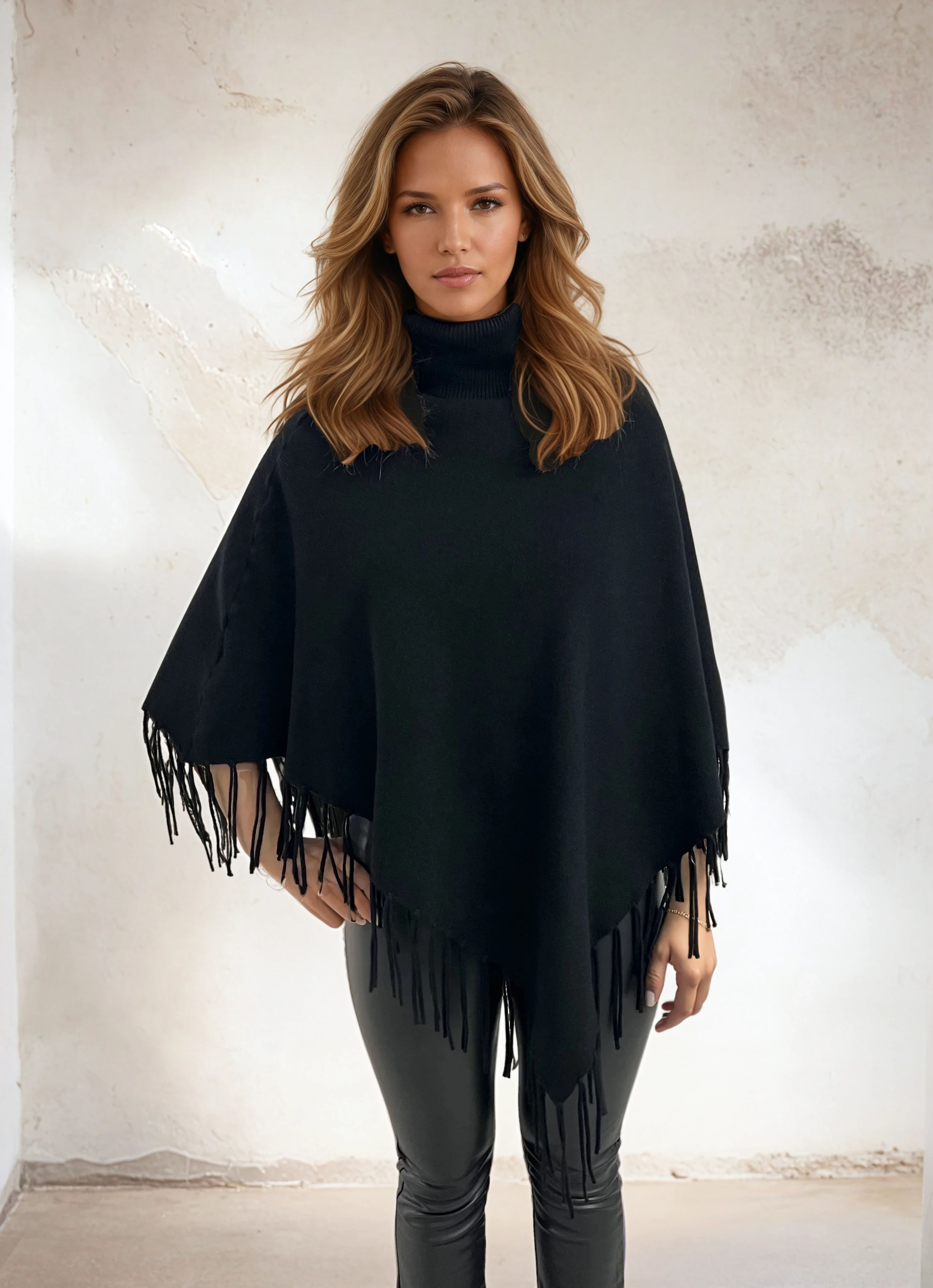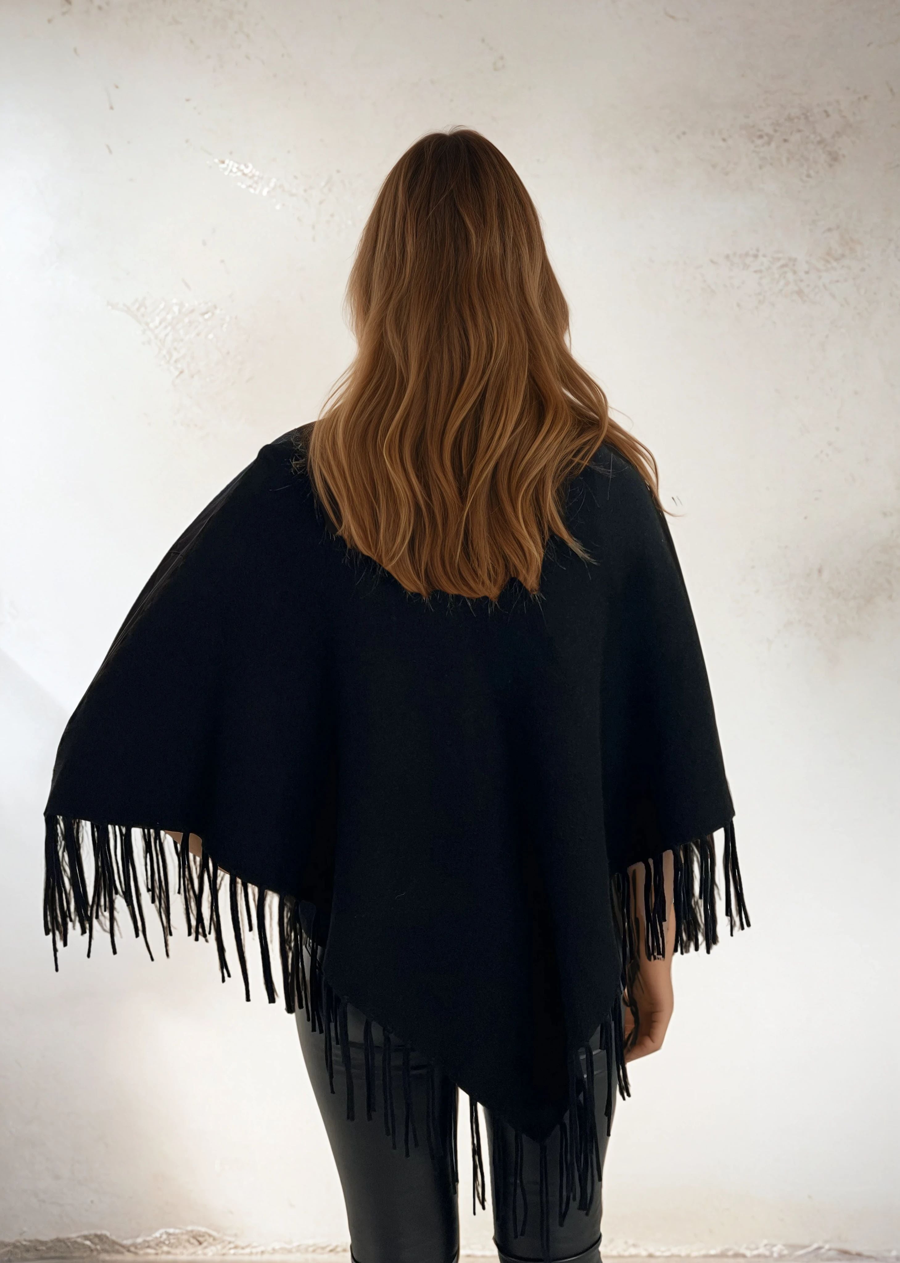 Poncho avec franges noirs