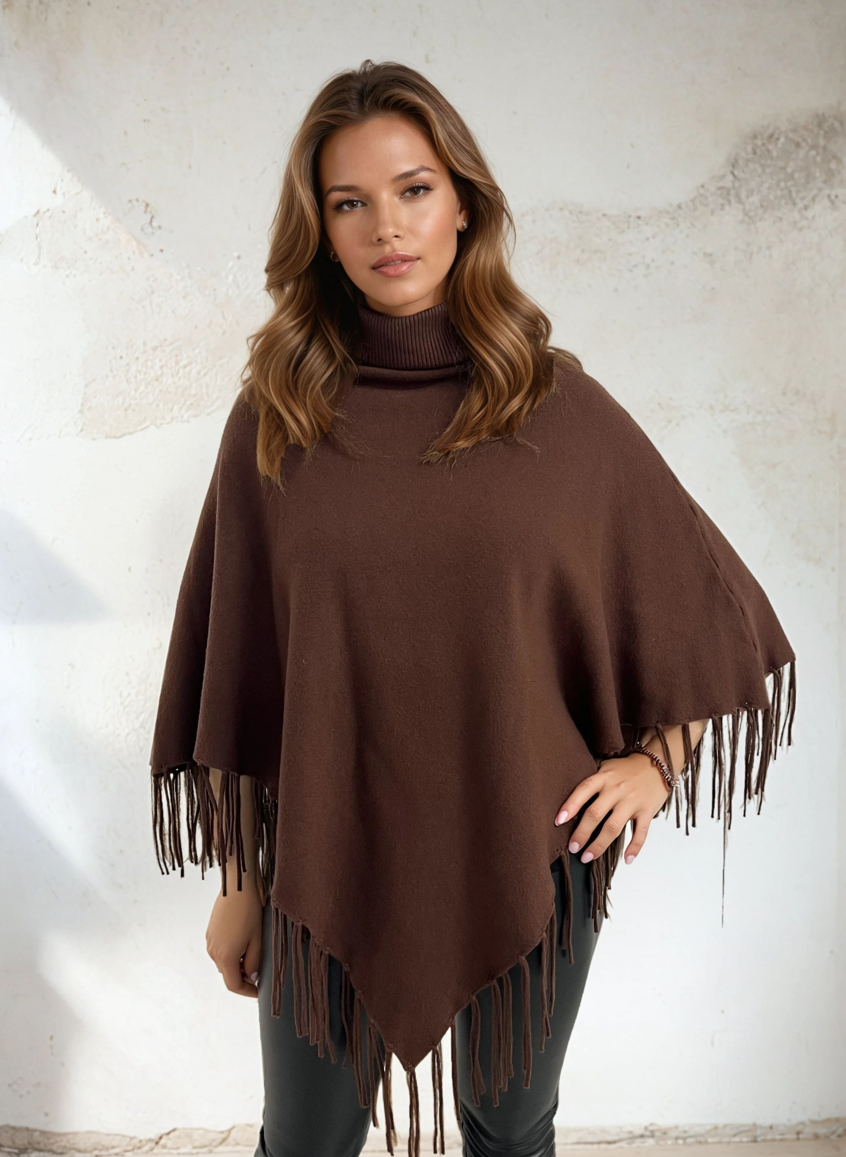 Poncho aux franges bruns
