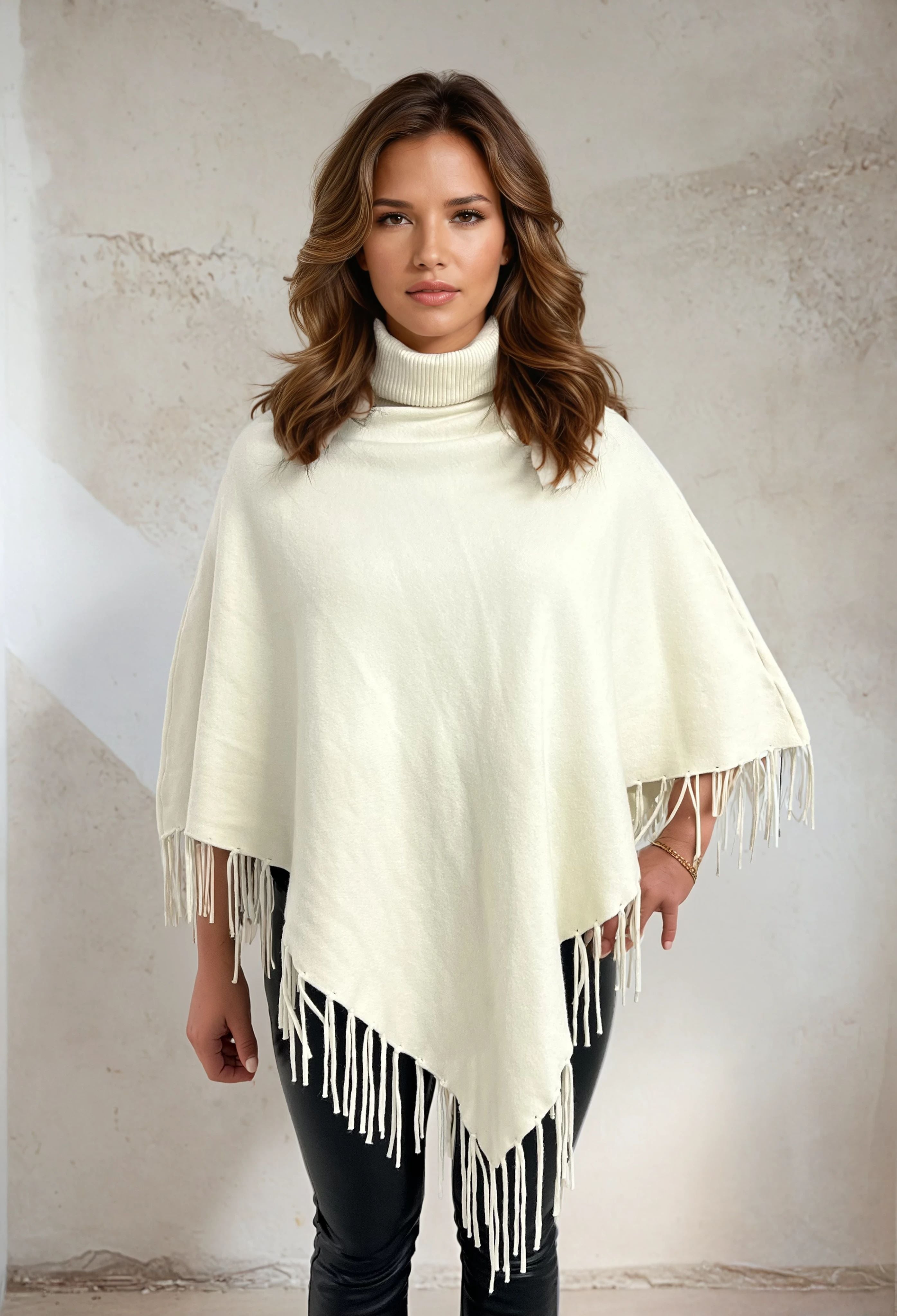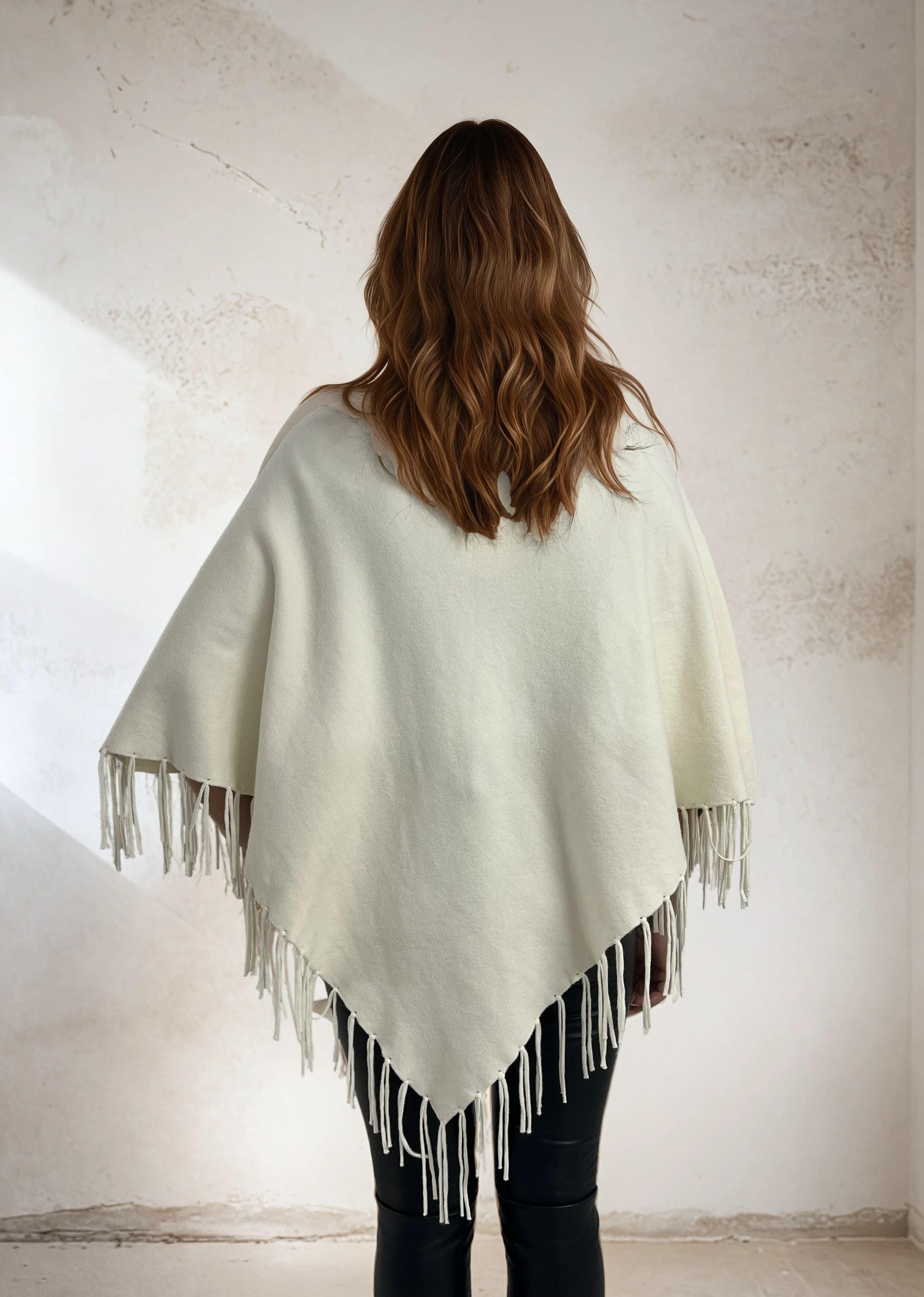 Poncho avec frange offwhite