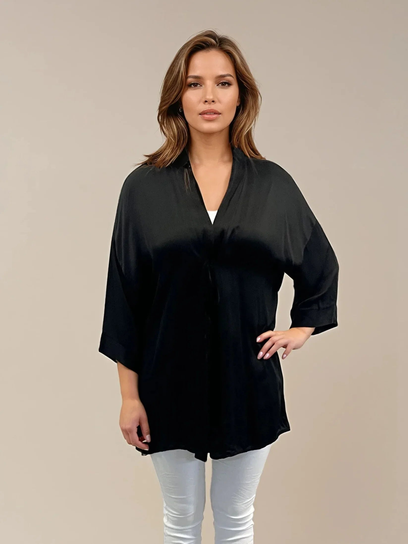 Airy, doux et élégant - ce chemisier Kimono en viscose à 100% est un vrai favori de la garde-robe! Il a un ajustement lâche avec une cravate vers l'avant et des manches larges qui donnent une sensation féminine et détendue 💗